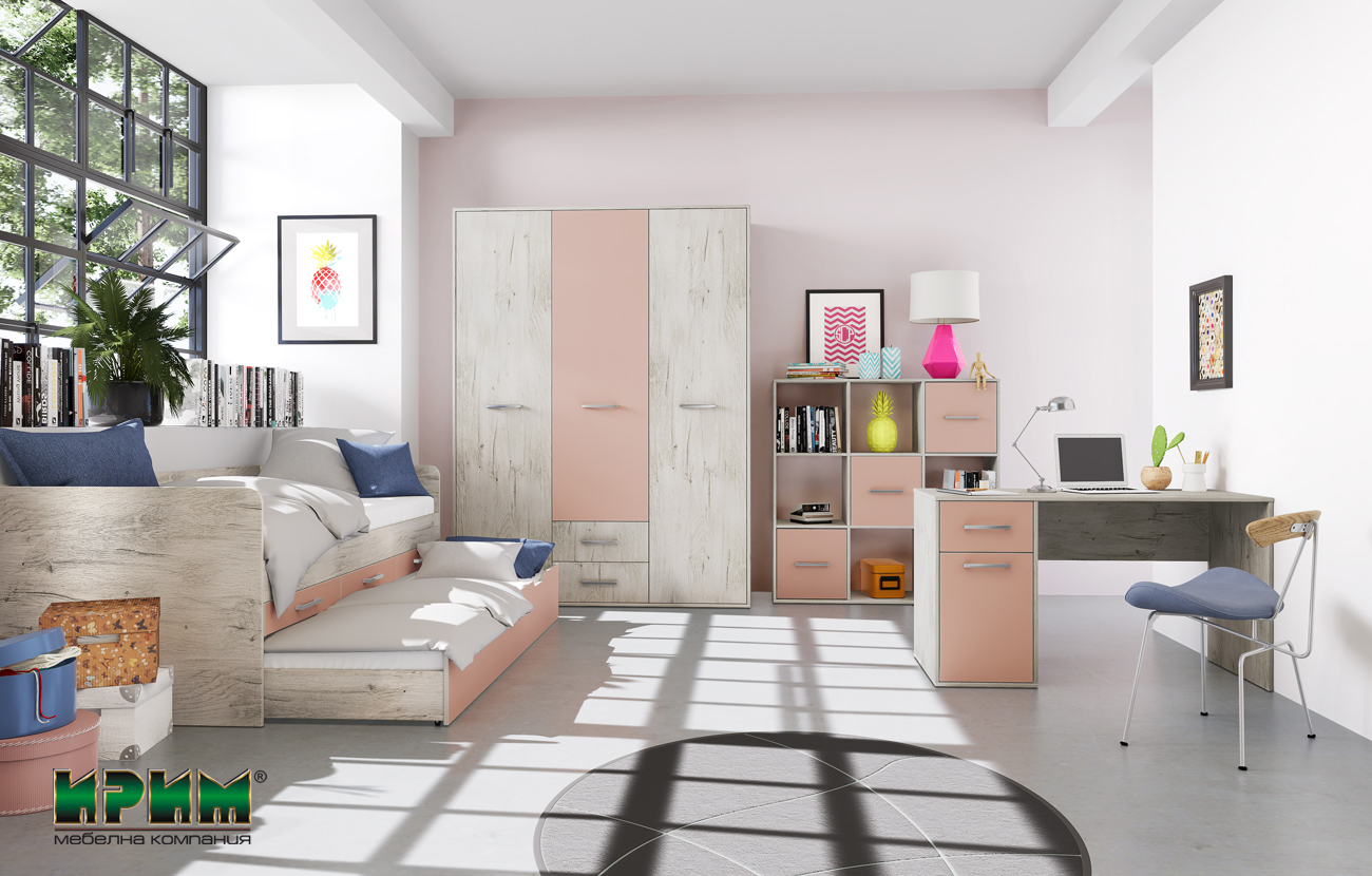 • легло сандвич Сити 2034-горчица / 2035-розово   за 2 бр. еднолицеви матраци 90/200 мм (не по-високи от 230 мм!)