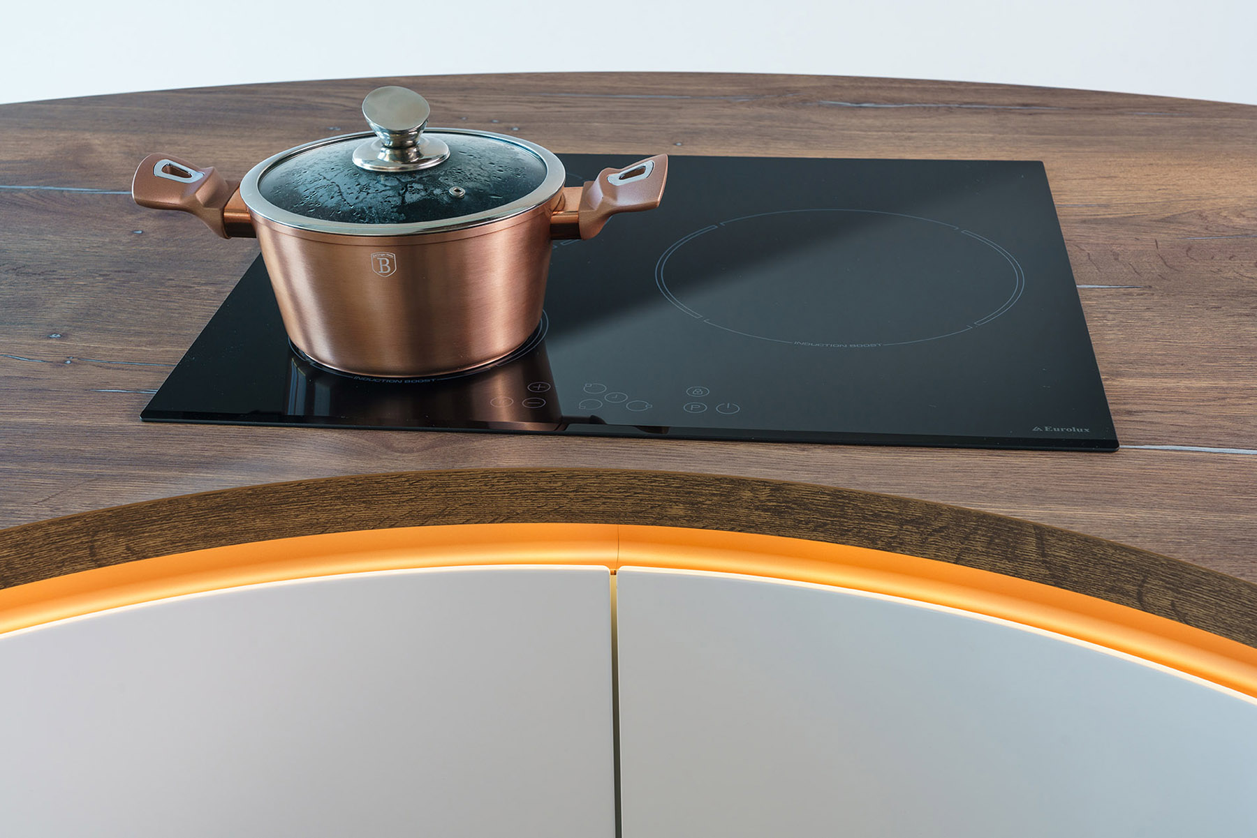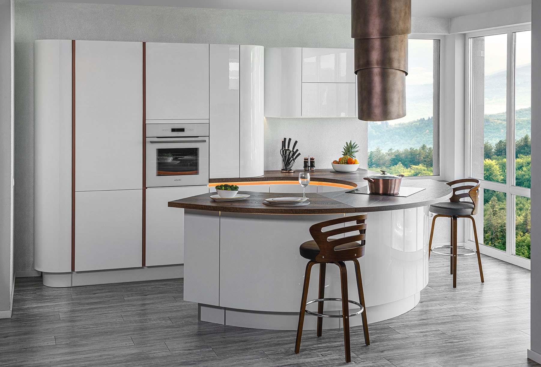 Следвайки най-съвременни тенденции REGINA е с просторна визия и приятни извивки. Кухня без дръжки. Вратите и чекмеджетата се отварят само с едно докосване, плавно и безшумно. Дори когато сте ограничени в пространството, една извита кухня като REGINA е най-доброто решение за вас. Можеш да разгледаш поредица от съблазнителните извивки на кухня Реджина, но ако имаш своя идея ще се радваме да я осъществим.