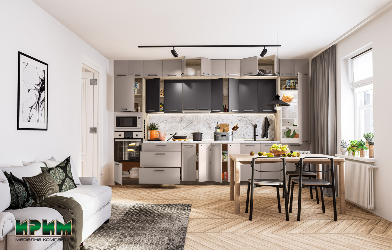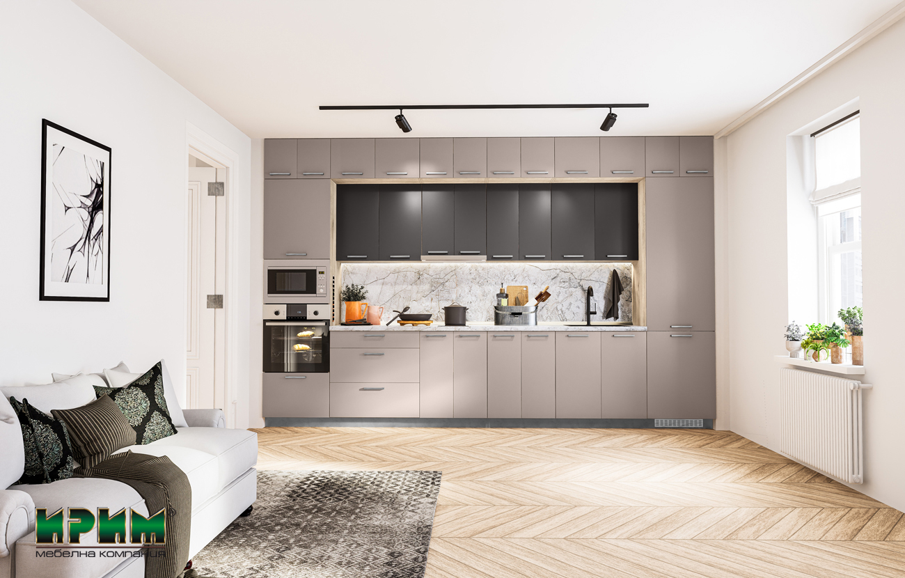 Кухня МДФ City 9118 е примерна модулна конфигурация. Ако размерът ви не отговаря на този, може да се направи избор на модулите и да се напасне според вашето разположение.