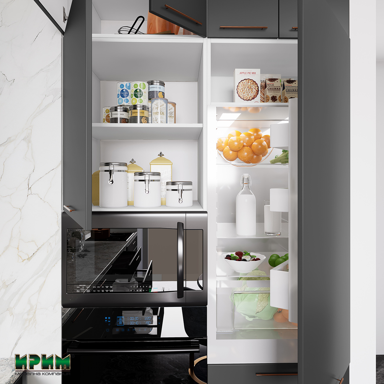 Кухня МДФ City 9130 е примерна модулна конфигурация. Ако размерът ви не отговаря на този, може да се направи избор на модулите и да се напасне според вашето разположение.