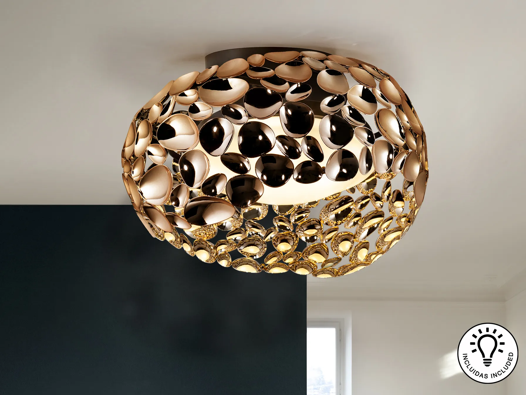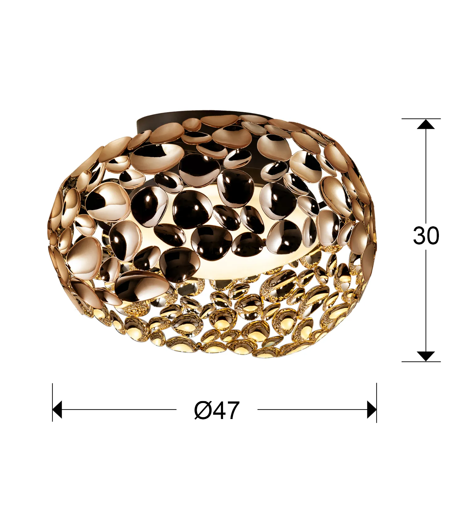 Лампата е изработена от метал с розово златно покритие и тъмен кафяв завършек, което я прави отличен акцент във всяко помещение. Вътрешният акрилен дифузер не само че придава елегантност, но и гарантира комфортно осветление.