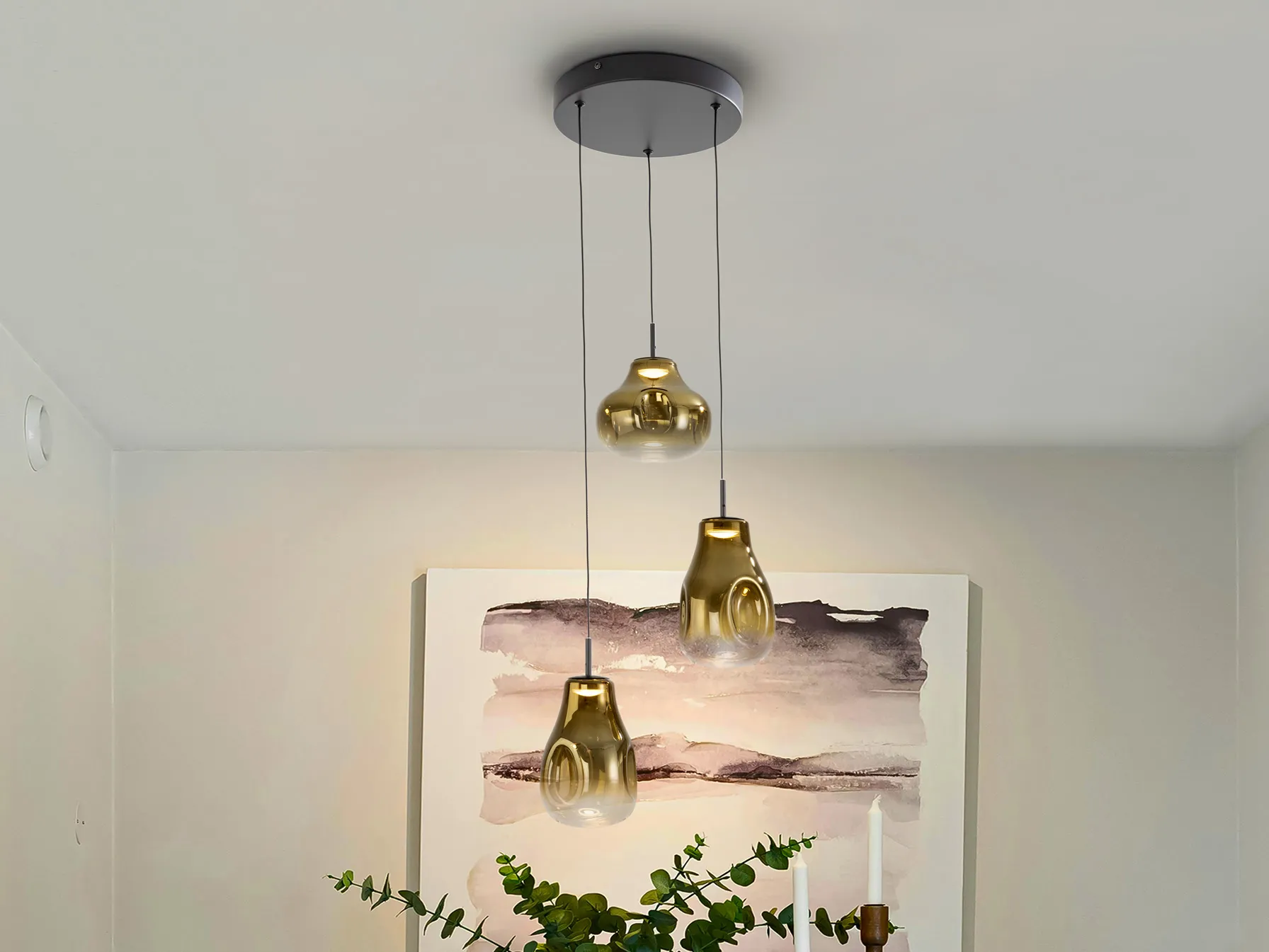 Лампата е изработена от висококачествени материали, с матово черно покритие, което придава стилен вид, и стъклен абажур, който градира от златно до прозрачно. Регулируемата височина позволява да се адаптира към различни пространства, а енергийно ефективната LED технология гарантира дълготрайна употреба. Изберете лампата ALEDIS за да добавите нотка лукс и уют във вашия дом.