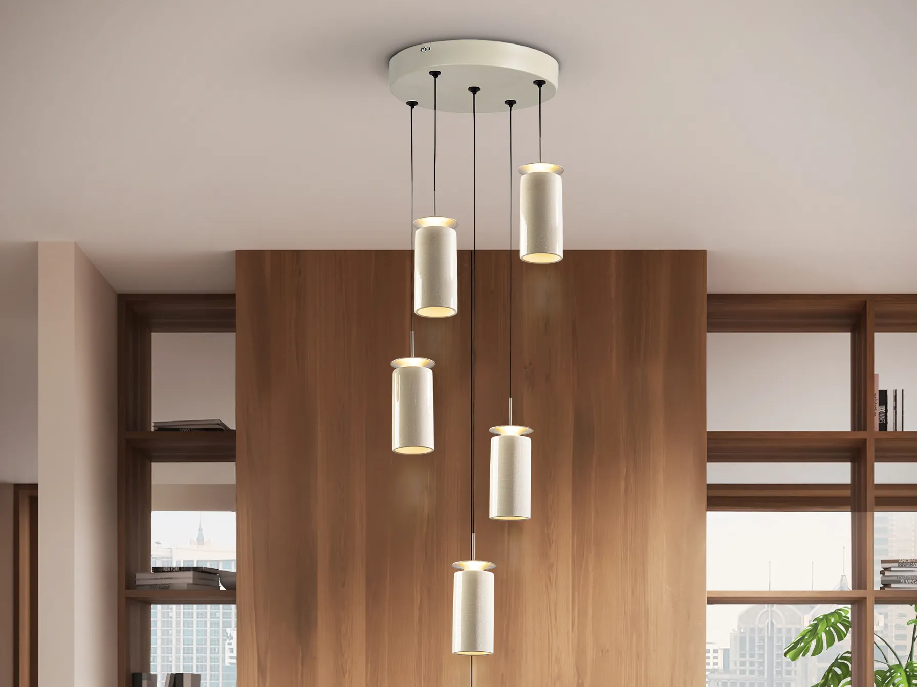 Лампата ALFARA е перфектен избор за всеки интериор, който търси стил и елегантност. Със своите 5 керамични абажура в кремав цвят, тя придава уникален акцент на всяко помещение.