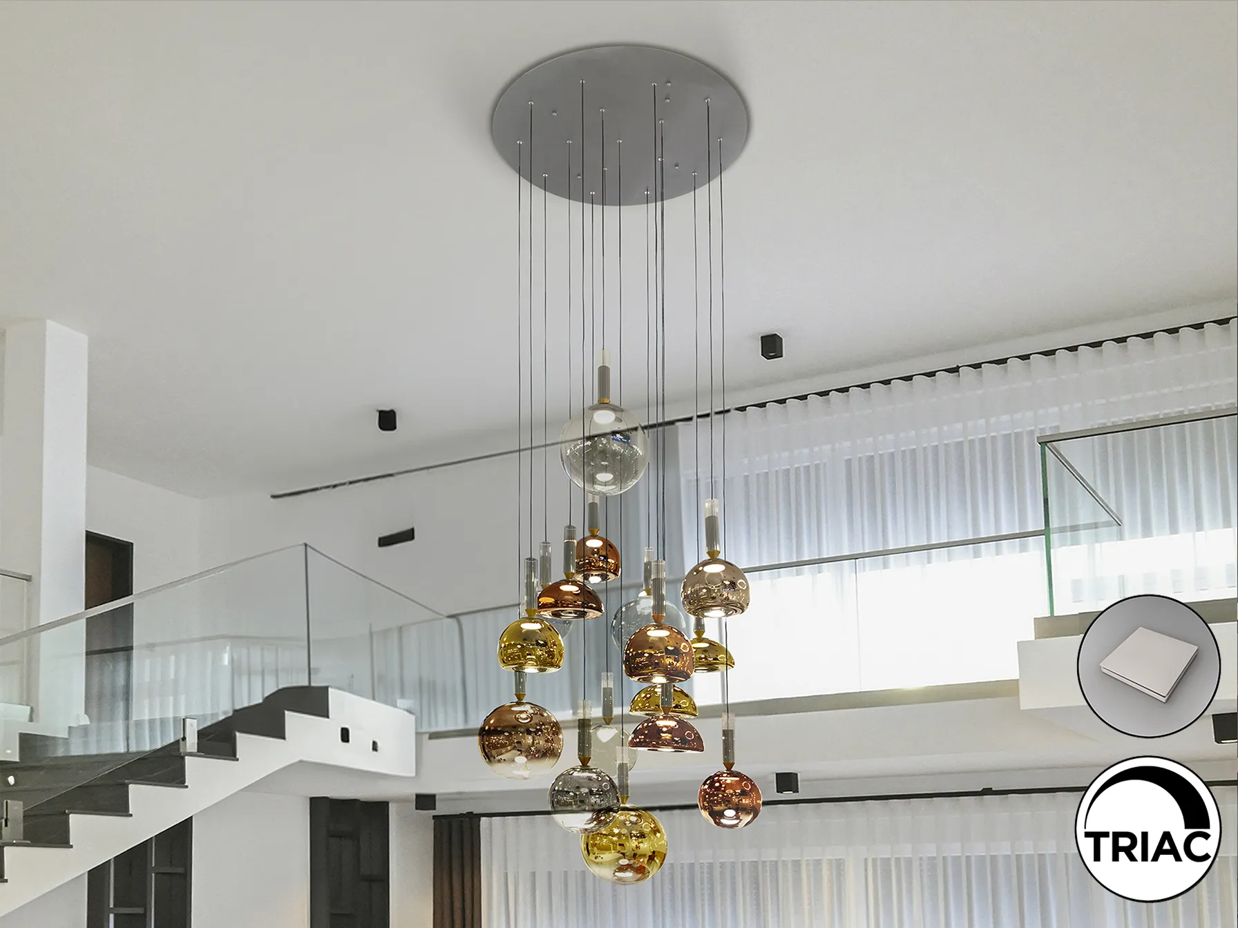 – Стъклен абажур с електролитно покритие в медни, златни, сребърни и прозрачни тоналности