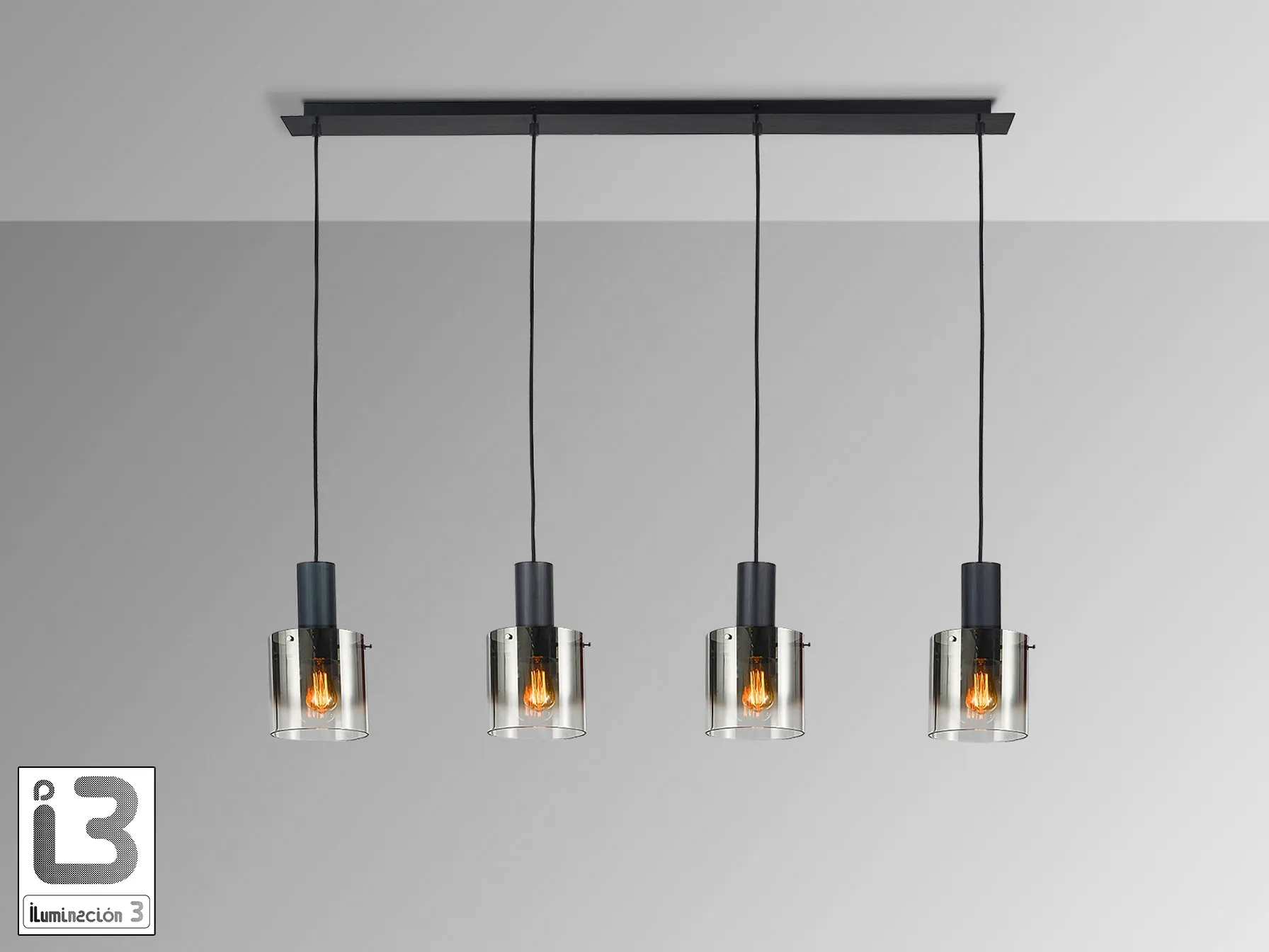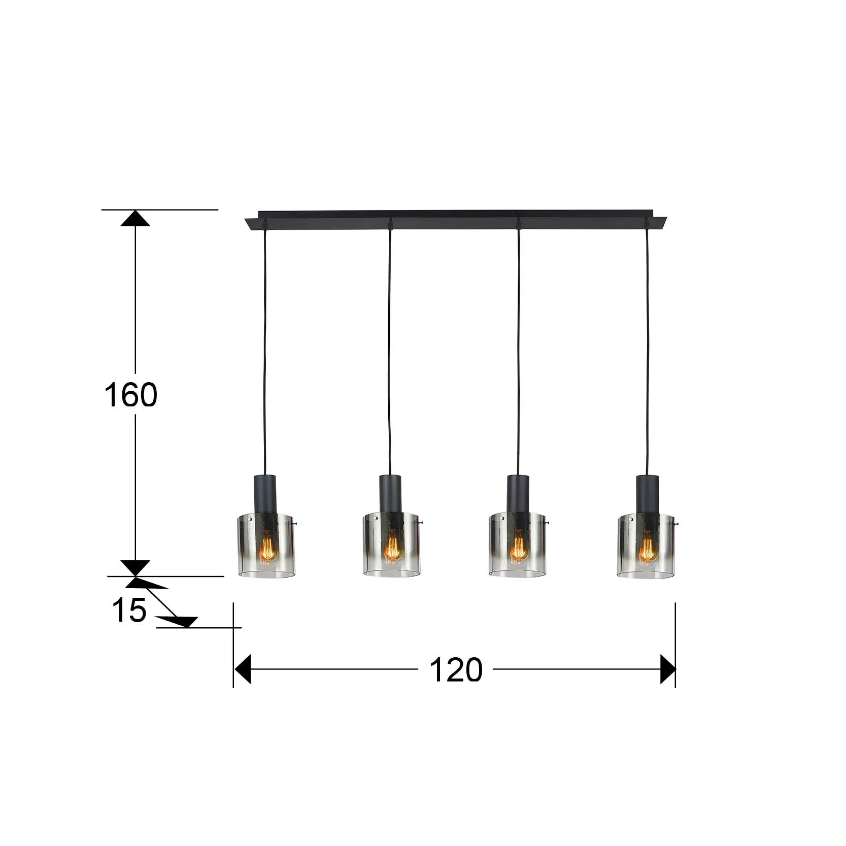 – **Абажури:** 4 димни стъклени абажура
