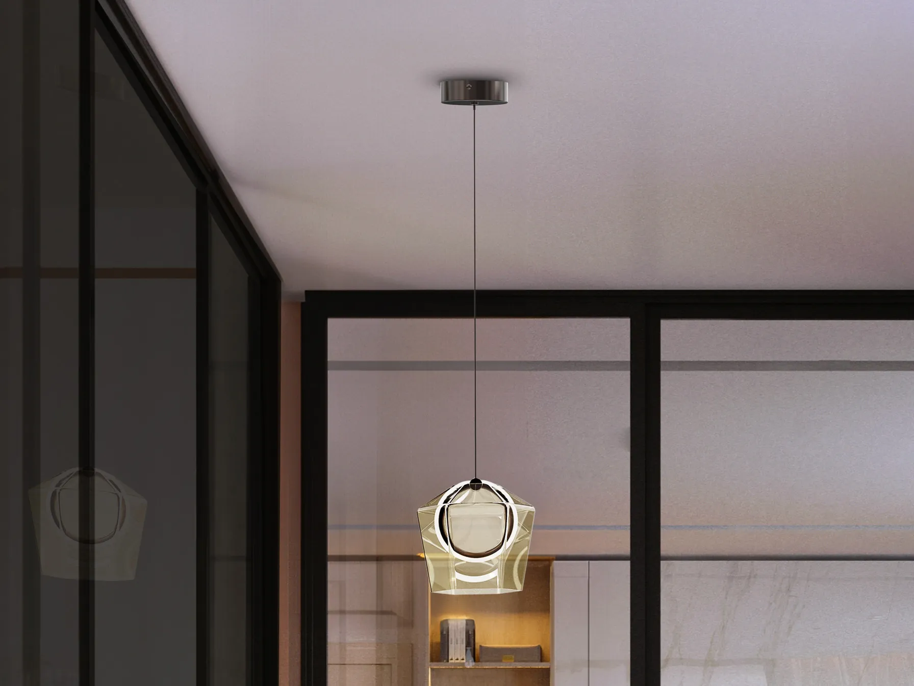 – Стъклен нюанс в шампанско с вграден LED светлинен ринг