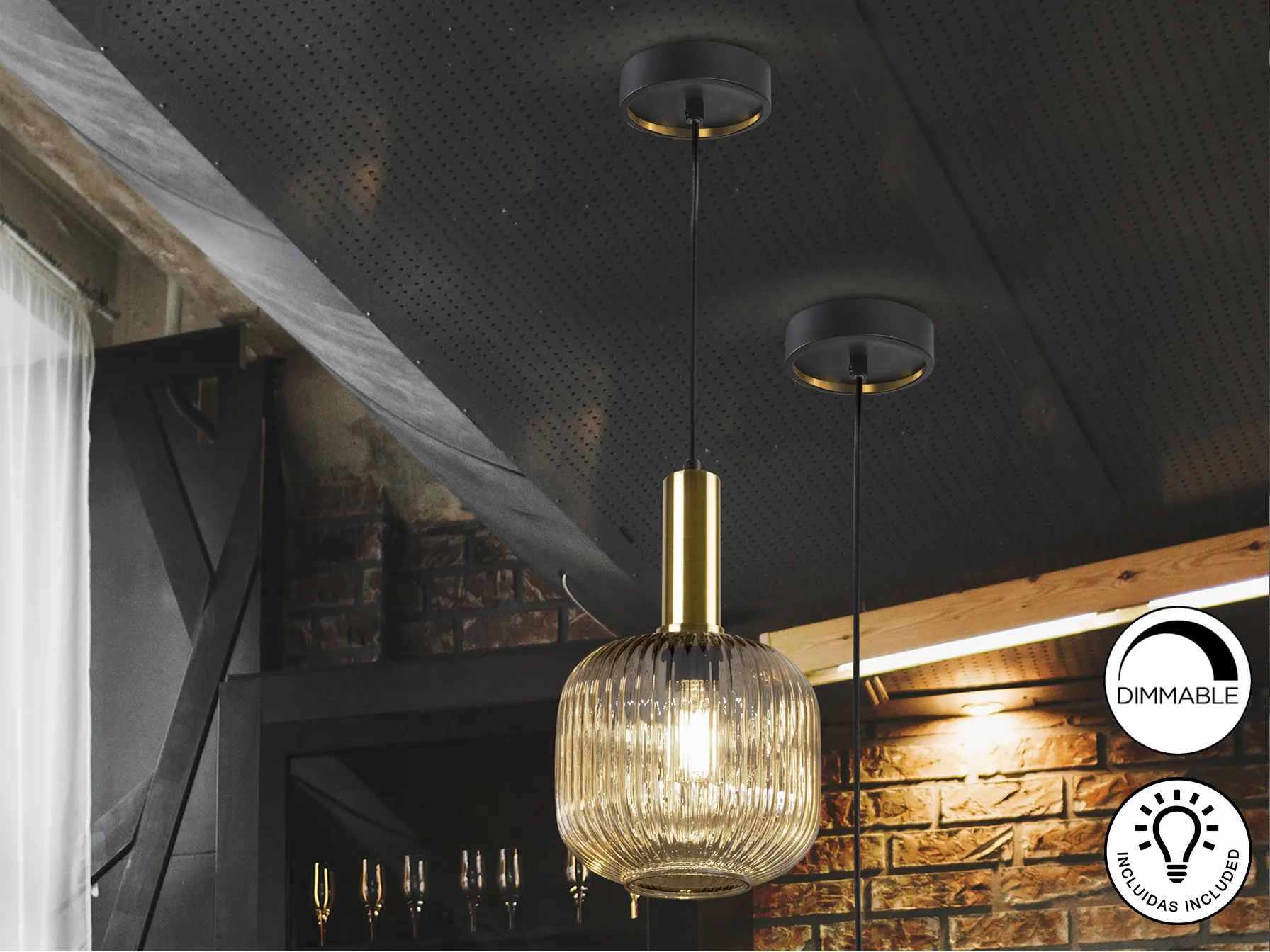 – **Стъклен абажур**: Кехлибареното стъкло е оформено, за да разпространява светлината нежно и приятно.