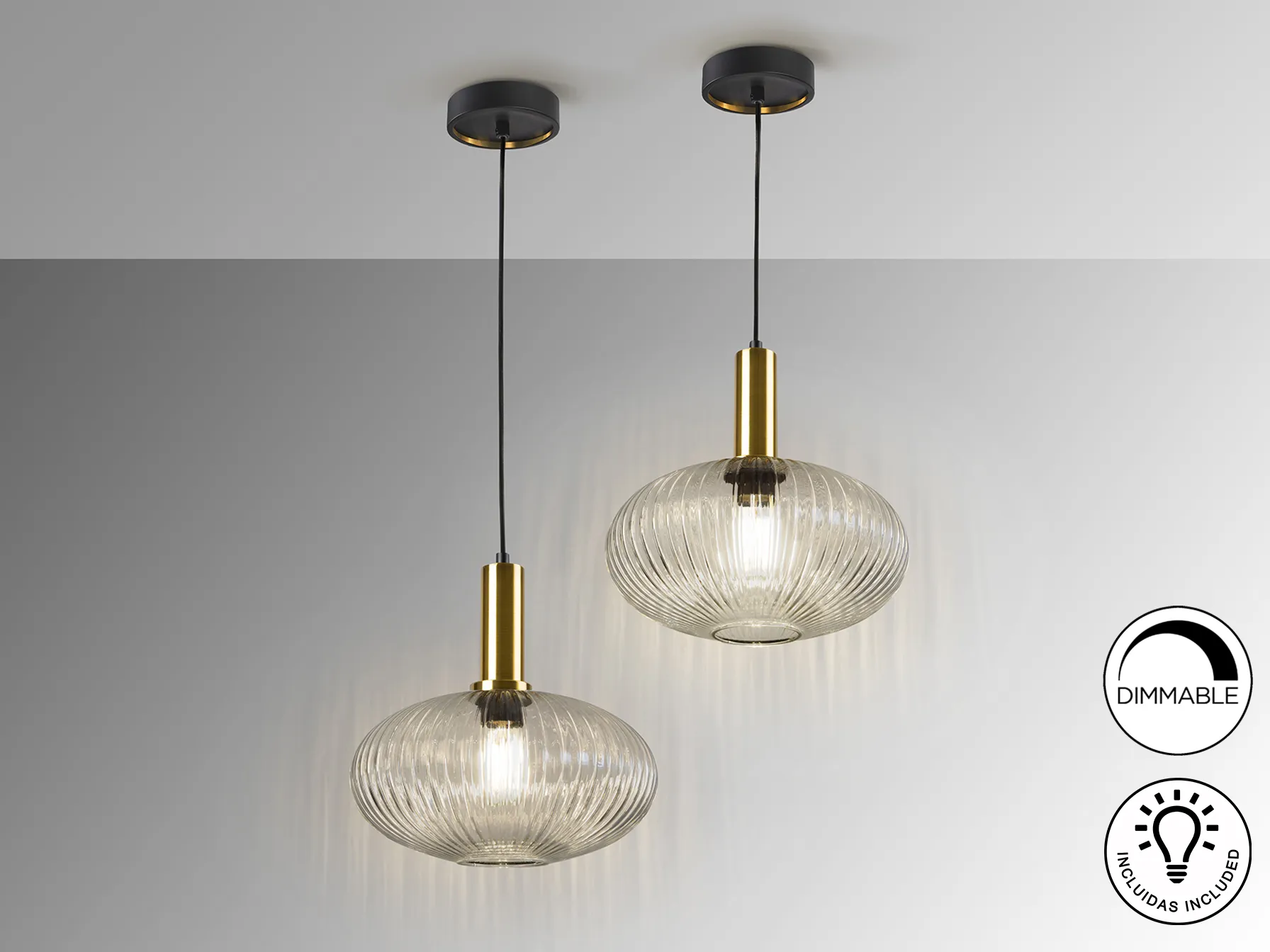 С матово черно покритие и сатенови месингови детайли, тя е не само практична, но и стилна. Прозрачният стъклен абажур осигурява ярка и приятна светлина, а възможността за регулиране по дължина я прави подходяща за различни пространства.