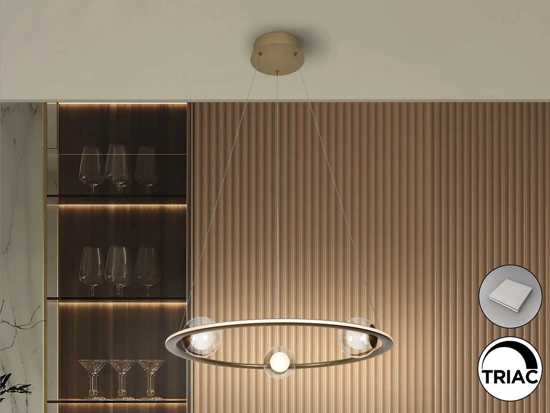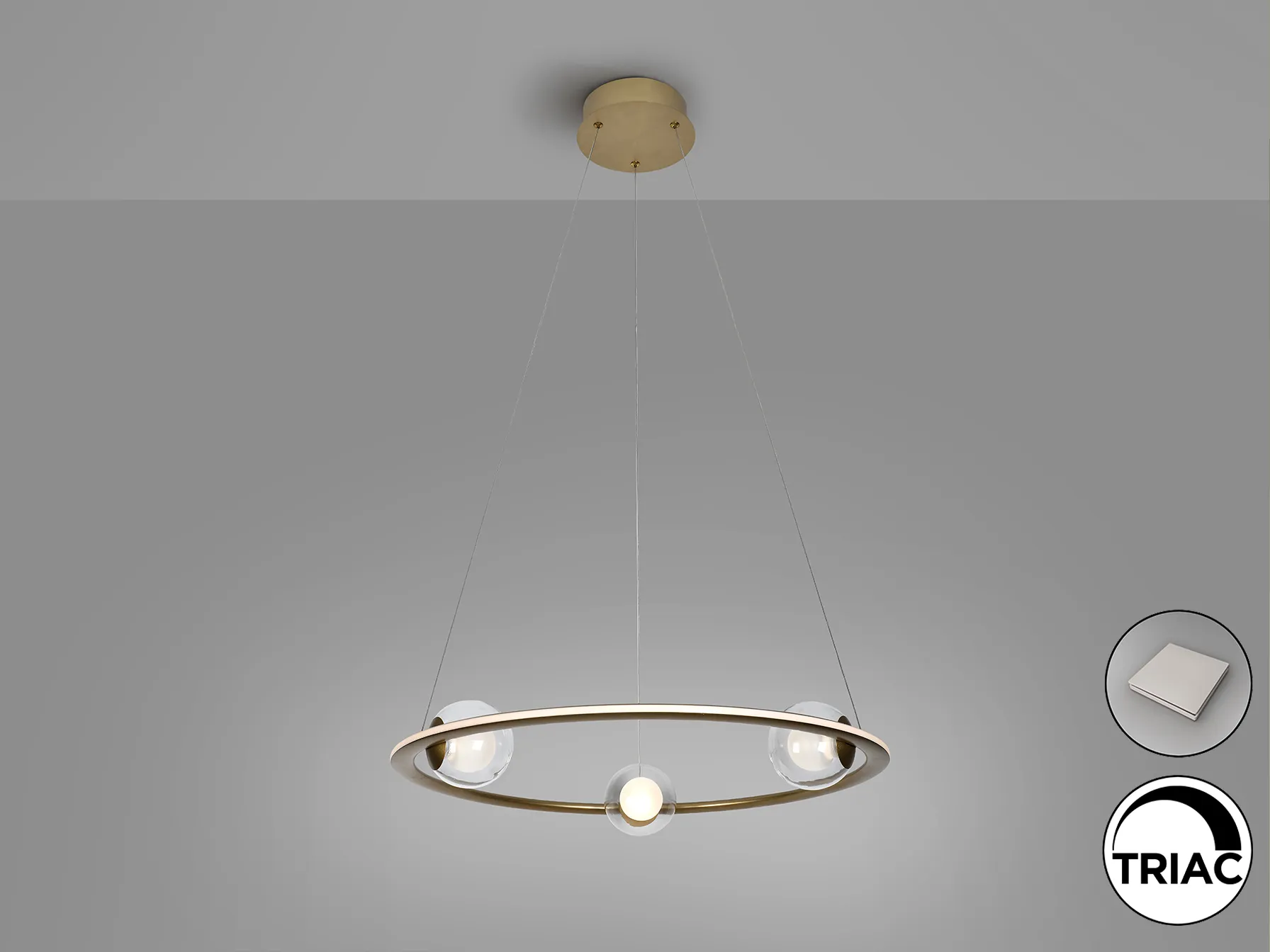 – **Стъклени сфери:** Три стъклени сфери с опалова вътрешност и прозрачен екстериор, осигуряващи меко и уютно осветление.