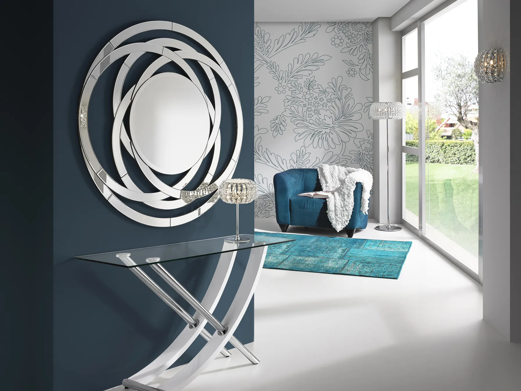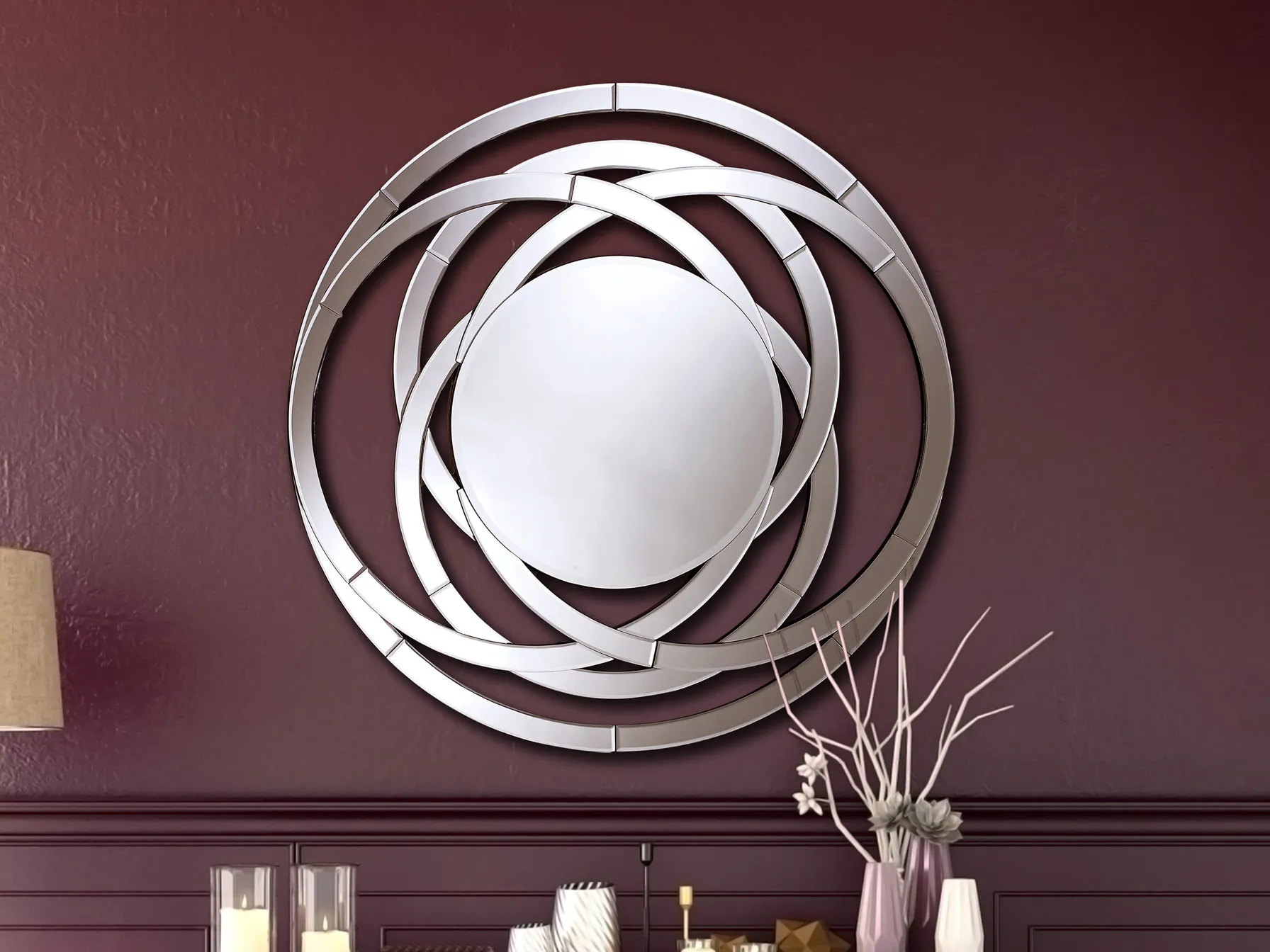 – **Дизайн:** Фасетен централен огледален панел с фриз от извити фасетни огледала.