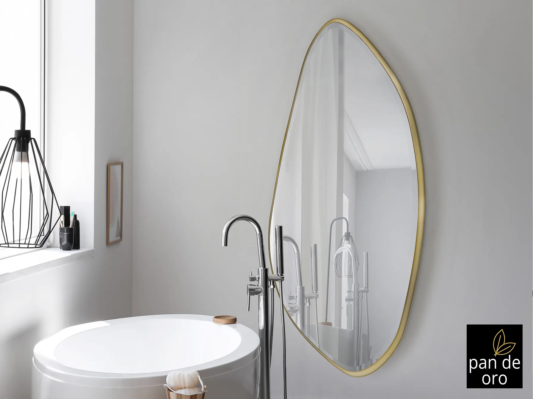 Огледалото MIMO е елегантен акцент за всяко пространство, което придава стил и лукс. Със своето неправилно овално оформление и златна рамка, то е перфектно за добавяне на визуален интерес в интериора.