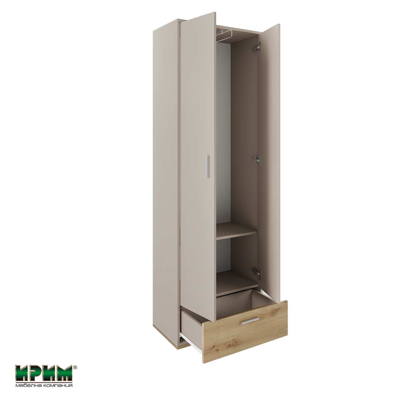 Нова модулна система с модерна визия и изчистено излъчване в дъб артисан и сатен. Всички модули се предлагат отделно, което я прави изключително удобна.Всчики отваряеми врати са снабдени с плавно затваряне. Предложен е избор между два шкафа за обувки, един с механизъм, а друг на рафтове. Тази комбинация е много актуална в съвременния интериорен дизайн.