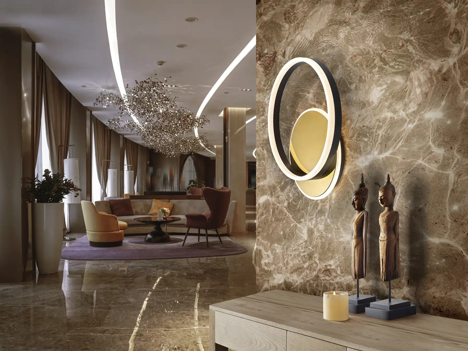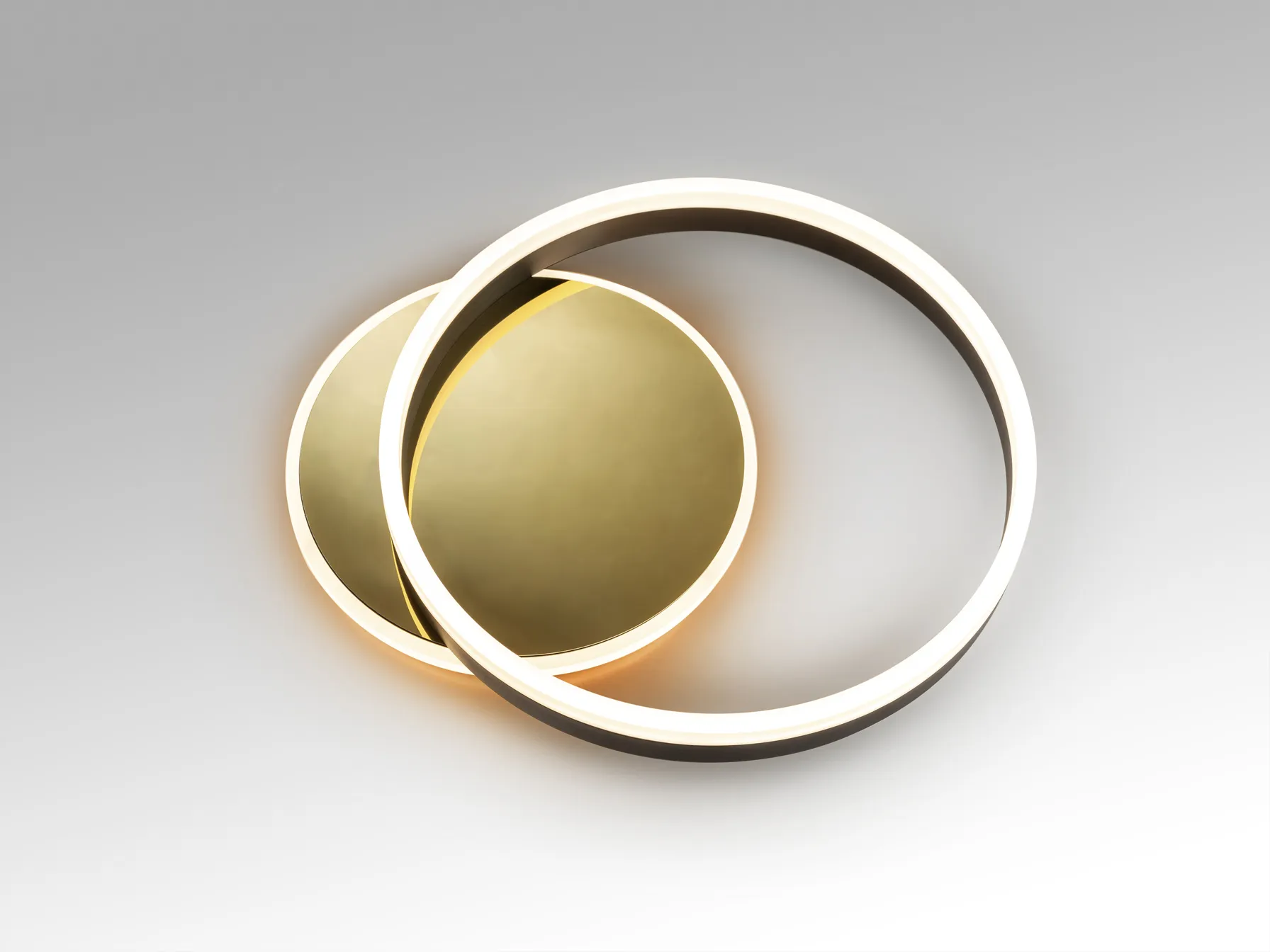 Светильникът ORIEL е перфектен избор за вашия дом, предлагащ стил и функционалност. Със своето елегантно златисто покритие и матово черно алуминиево завършване, той добавя модерен акцент във всяко пространство.