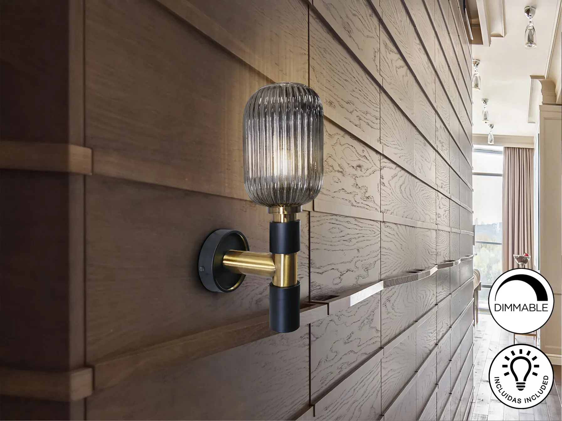 С прозрачния стъклен абажур, лампата предлага приятно разсейване на светлината, което прави атмосферата в помещението още по-привлекателна. Подходяща е за използване в коридори, дневни или спални, предоставяйки не само функционалност, но и естетическа стойност.