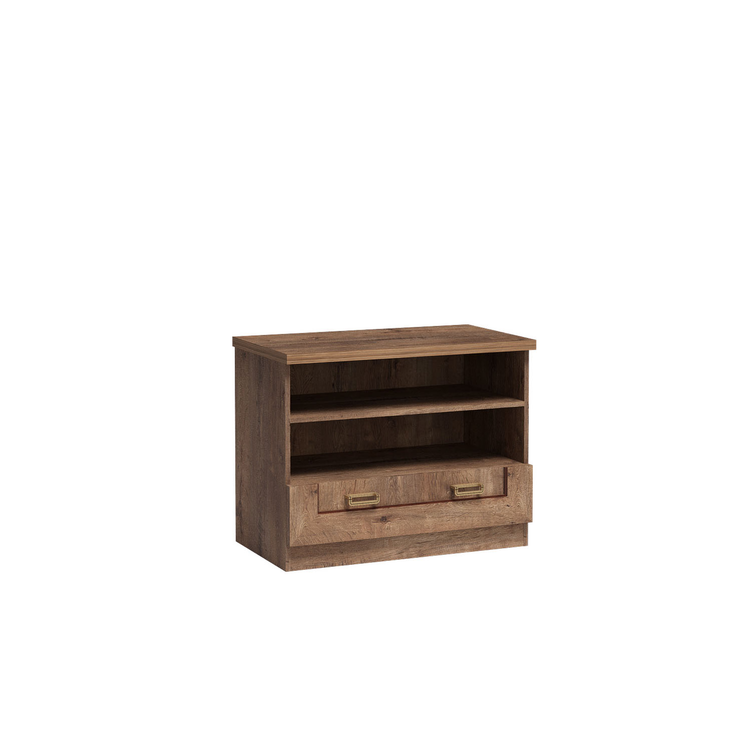 Модулът може да побере много неща, а освен това ще запази красивия си цвят за дълго време. Предлага се в нюанс дъб. Перфектната мебел за вашата спалня, всекидневна и детска стая. Използваните метални дръжки допълват чара. Плавното плъзгане на вратичките и чекмеджетата се осигурява от качествени водачи.