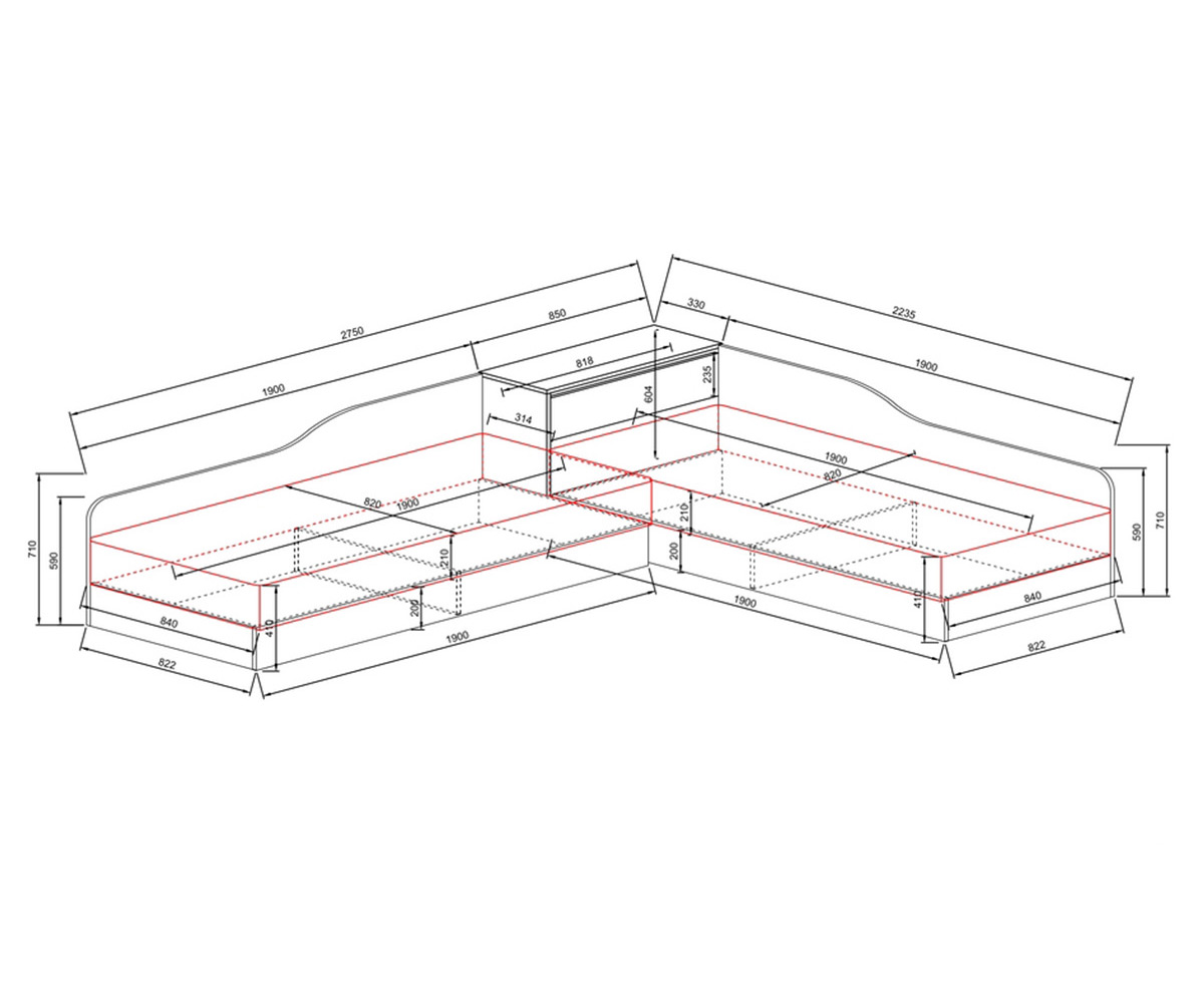 Габаритни размери: 2235/2750/710мм.