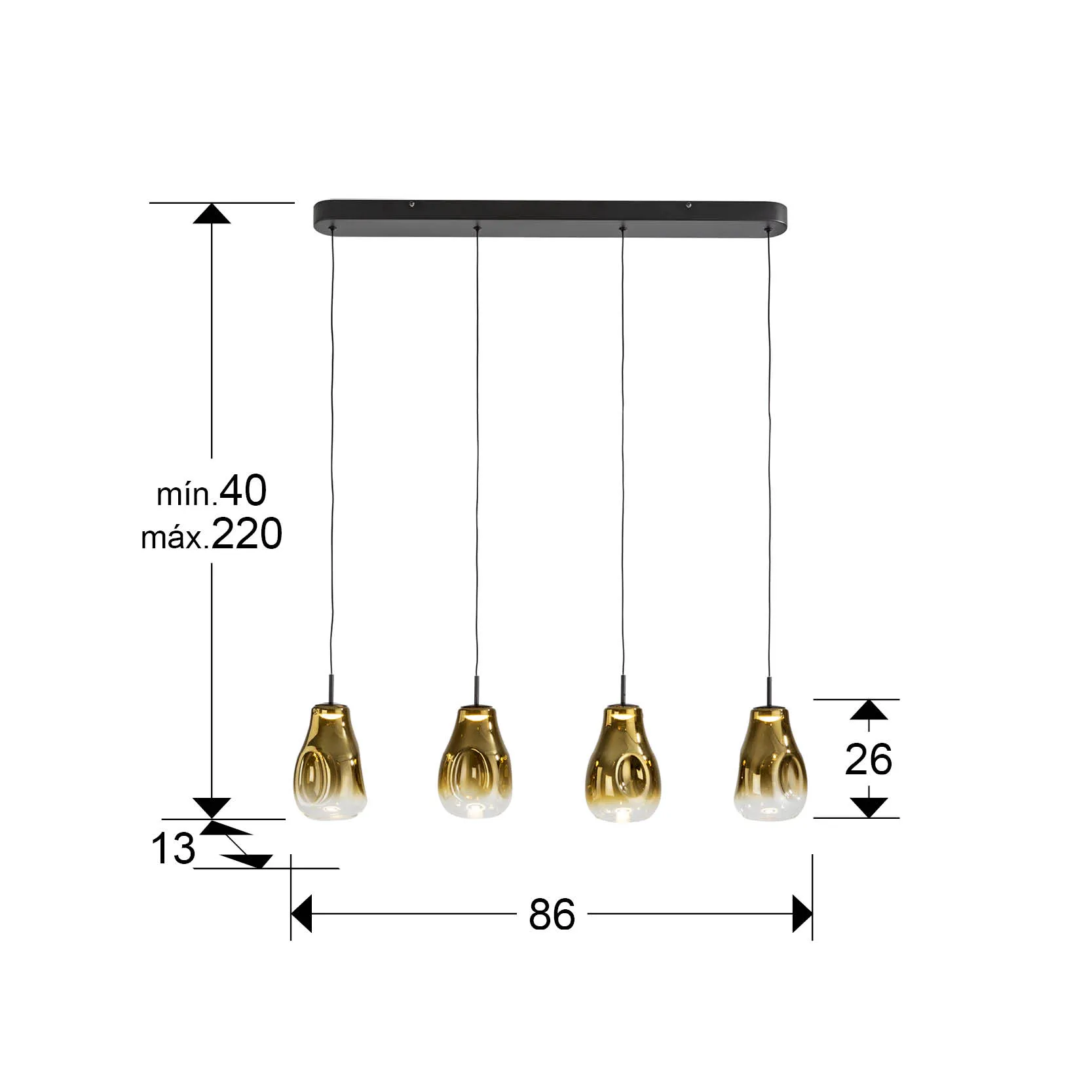 Лампата ALEDIS с 4 светлини е перфектното допълнение за вашия интериор. Със своето стилно матово черно покритие и абажури от стъкло в златист нюанс, тя съчетава елегантност и функционалност.
