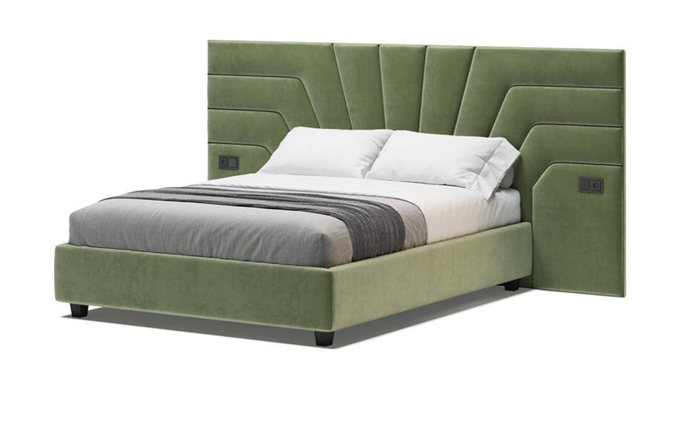 Таблата на леглото Boston е ключовият елемент в дизайна – асиметрична композиция с тапицирани панели и диагонални линии. Разширена хоризонтално, тя придава изискан архитектурен облик, като акцентна стена. Ниската и компактна основа подчертава по идеален начин контраста с внушителната табла.