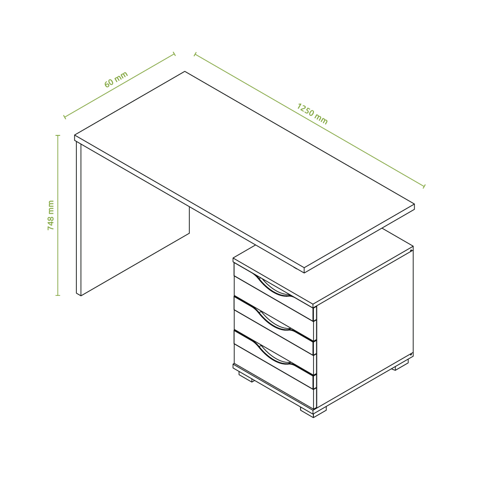 Компютърно бюро за детска спалня от колекция JOY с три чекмеджета с дръжки от МДФ в различни цветове.