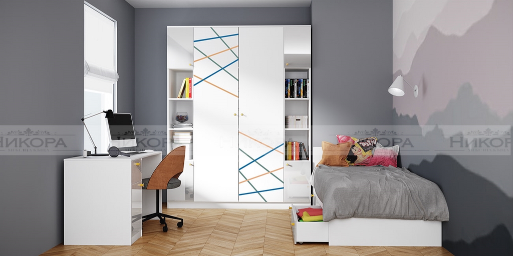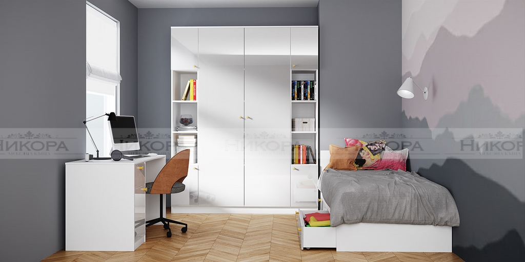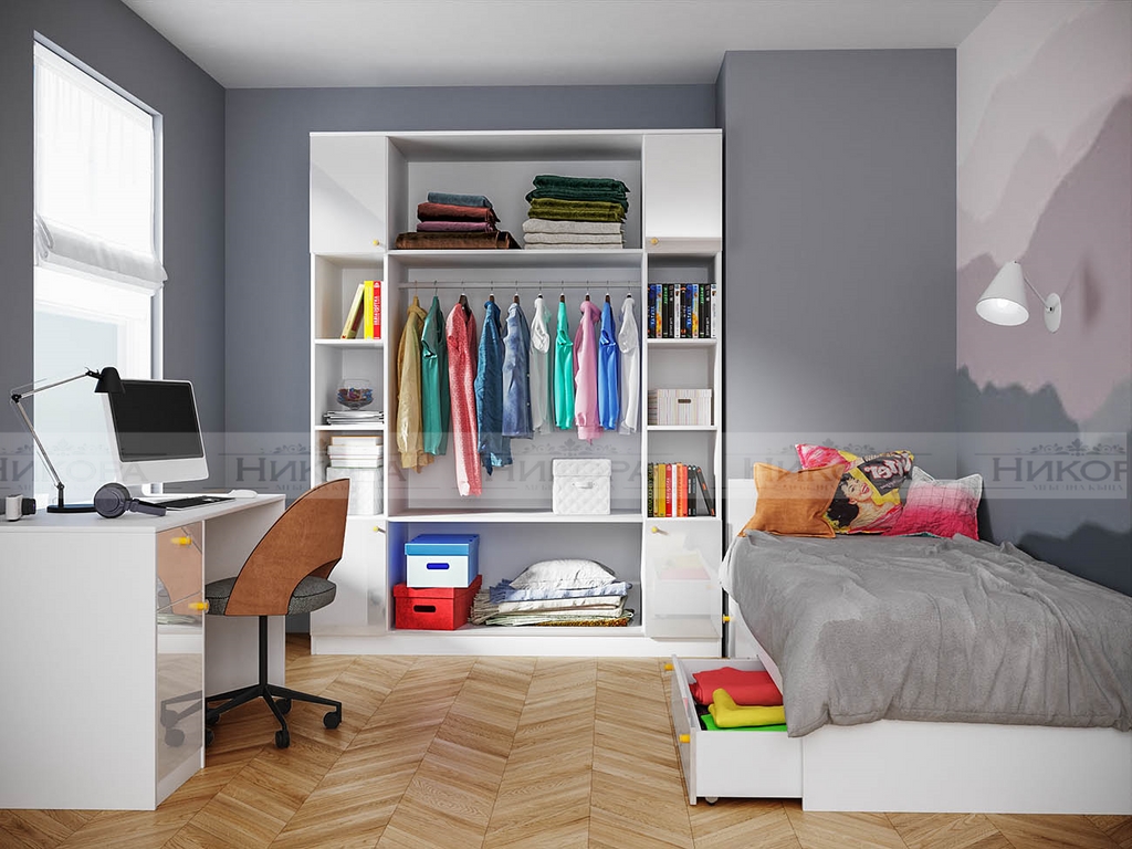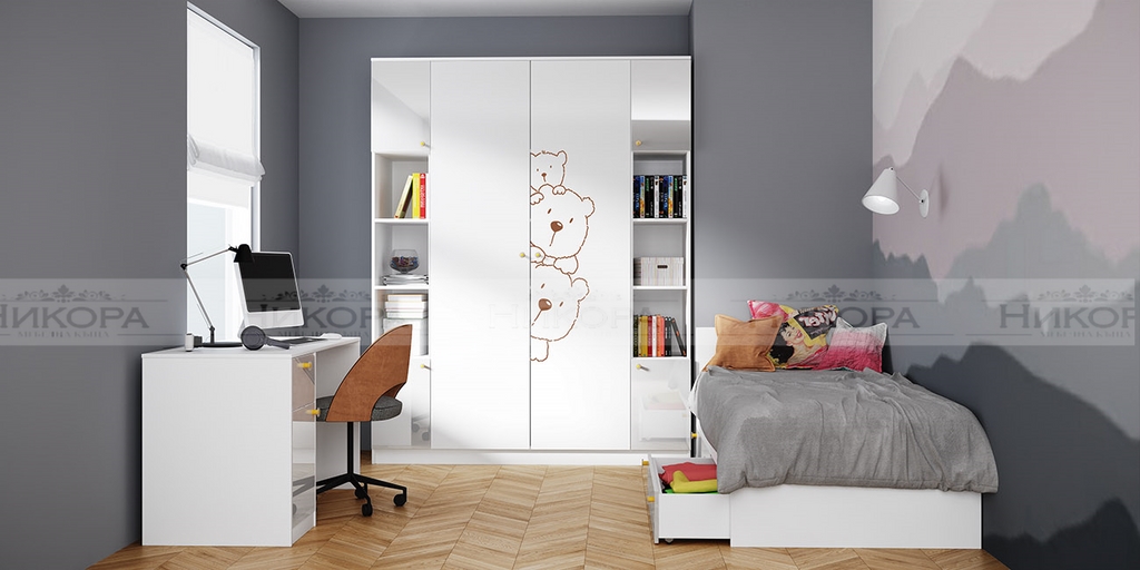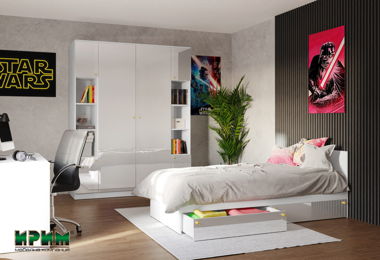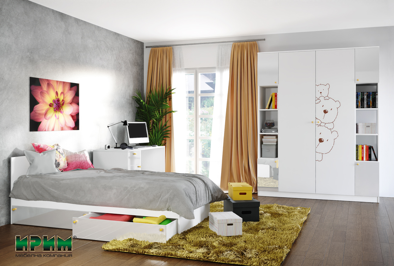 Детското обзавеждане включва: бюро, легло и гардероб БЕЗ две врати.