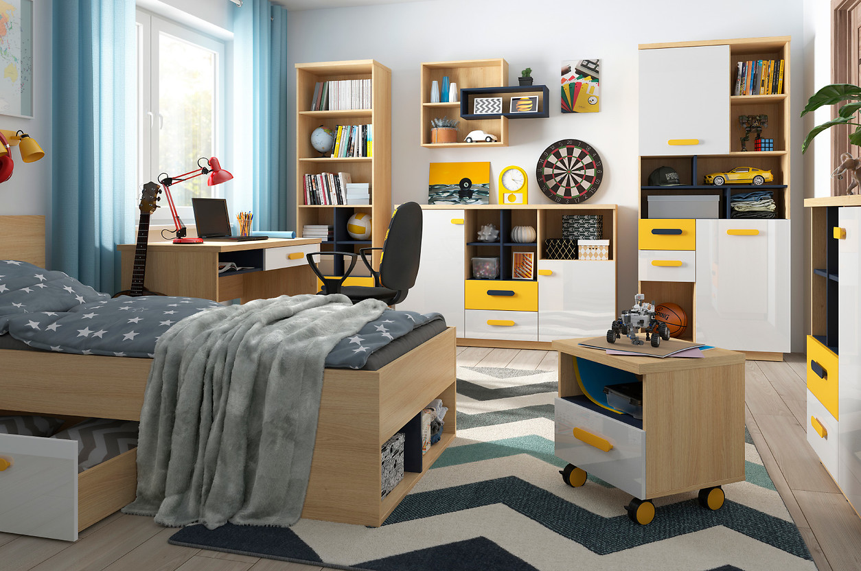 Подреждането на детска и юношеска стая може да бъде голямо приключение. Запознайте се с очакванията на вашето дете, съобразете с някои от вашите решения и го оставете да избира свободно аксесоари. Най-важното обаче е солидна основа – младежките мебели от модулната колекция Wesker ще украсят интериора и ще направят стаята на детето ви практична, стилна и удобна.