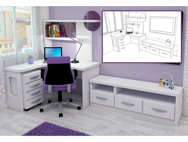 Това е проект за детска изработена от проектантите на Мебелна къща “Никора”. То е с ПДЧ гланц – 18 и 36мм.
