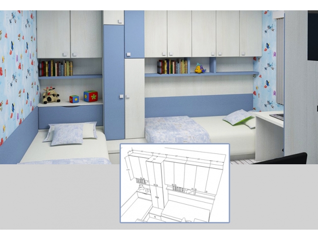 Това е проект за детска изработена от проектантите на Мебелна къща “Никора”. То е с ПДЧ гланц, 18мм