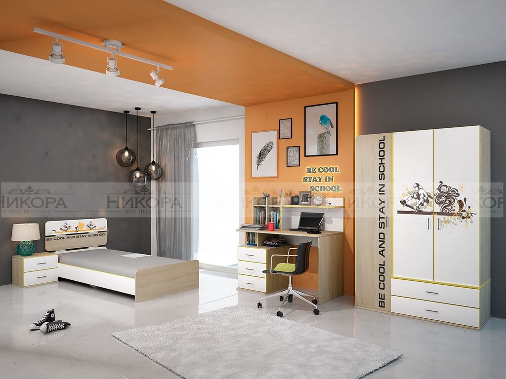 – Легло с нощно шкафче и повдигащ механизъм за матрак 90/200 /с възможност за двулицев матрак/