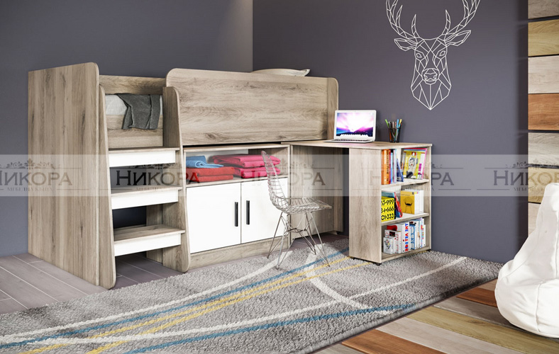 Детско обзавеждане City 5023 включва легло с повдигащи амортисьори за еднолицев матрак 900/2000мм с възможност за двулицев матрак. Всички врати са с механизъм за плавно затваряне.