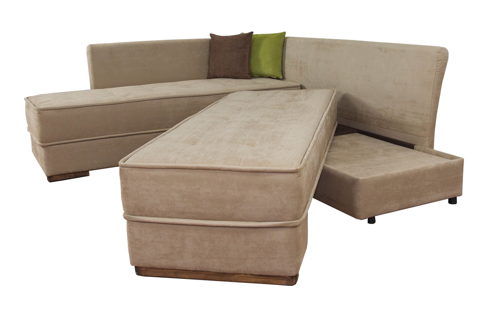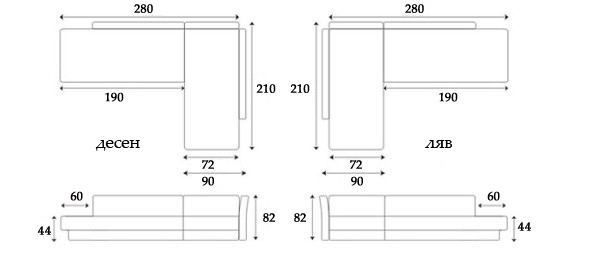 - Седална част – пружинен пакет тип „Бонел” или индивидуално пакетирани “Покет” (от опциите), пенополиуретан с висока плътност