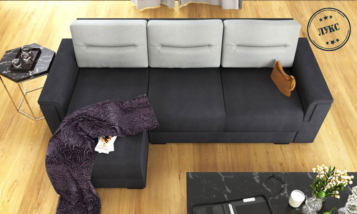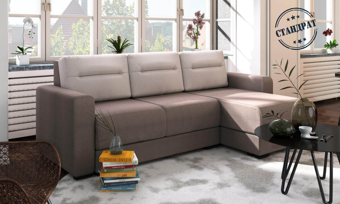 Модел с дизайнерска линия, галеща сетивата на модерния Клиент. Променяща се визия или размер СПОРЕД МОДЕЛА НА ПОДРЪЧНИКА – “ЛУКС “или “СТАНДАРТ”, универсална лява/дясна ориентация, цвят и материя по избор от картел + механизъм за сън от ново поколение. Седална част с височина, оптимизирана за хол или трапезария. Удобство, функционалност, здравина .