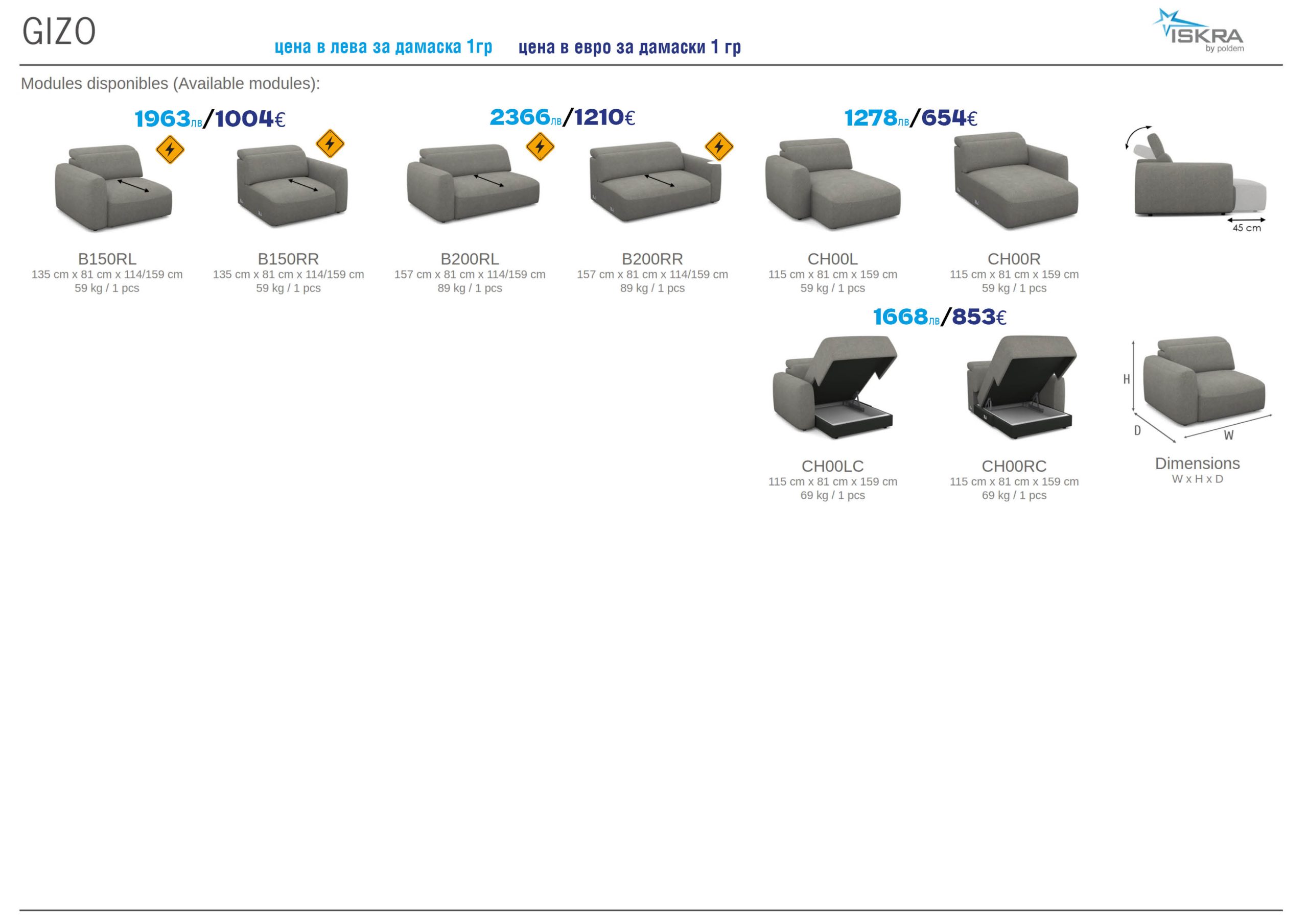 Посочените размери в техническите характеристики и каталога са ориентировъчни. Възможно е отклонение от +/- 4 см при всеки модул.