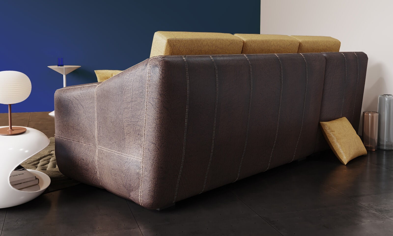 Класическата висококачествена дървена конструкция е подсилена с рамки от метален профил. Това създава допълнителна здравина и предотвратява характерните за „евтините“ дивани усуквания и произтичащите скърцания, счупвания, несигурност при ползване и лоша работа на механизма. Комфортът се подсилва с употребата на „сандвич“ от висококачествени материали с отворена клетъчна структура. В дивана са вложени здрава и същевременно мека на допир мебелна дамаска, обемни антиалергични силиконови влакна върху седалка от PENO ELASTIC FOAM с повишена еластичност и опора от индивидуално реагиращ ЗИГ ЗАГ.