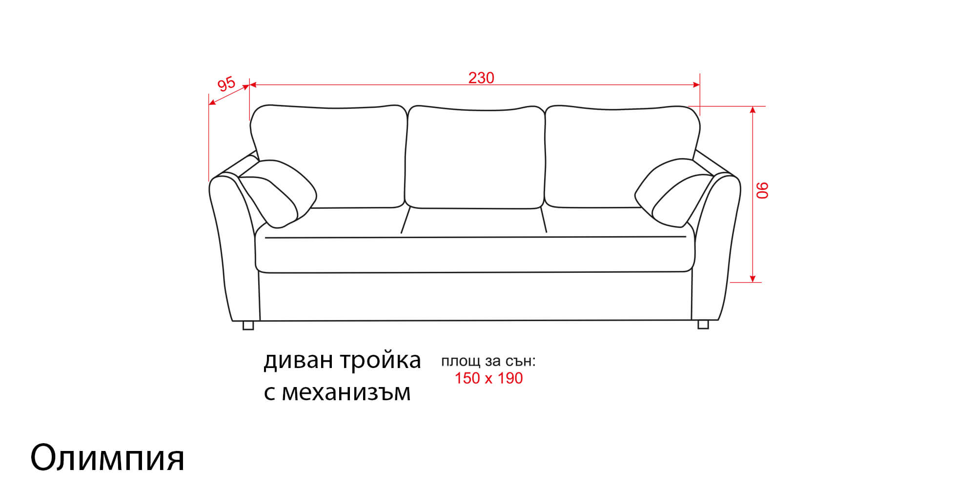 Да се отпуснеш и да потънеш в комфорт! Ползотворно да прекарваш времето, отделено за малките любими ежедневни удоволствия. Диван “Олимпия” е с подчертана индивидуалност от професионалистите в дизайна, създаден за да се впише лесно и естествено в интериора на съвременното жилище. С усещане за релакс и комфорт, благодарение на вложените технологии от 21 век. Преминете към ново ниво на комфорт с диван Олимпия. Изключително здрав и модерен, моделът предлага удобства, които отговарят на съвременните изисквания за модерно жилище.