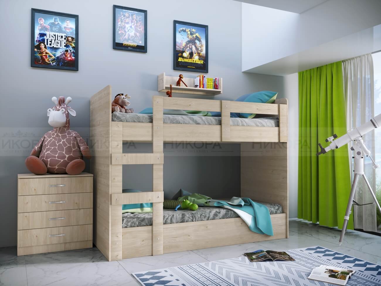 Двуетажно легло City 5015 е доста интересно и бюджетно решение за такъв тип обзавеждане. Конструкцията е достатъчно здрава за употреба от деца. В комплект с леглото има и етажерка за стена. Леглото е за матраци 900 / 2000. Има възможност за двулицеви матраци посредством ламелни рамки.