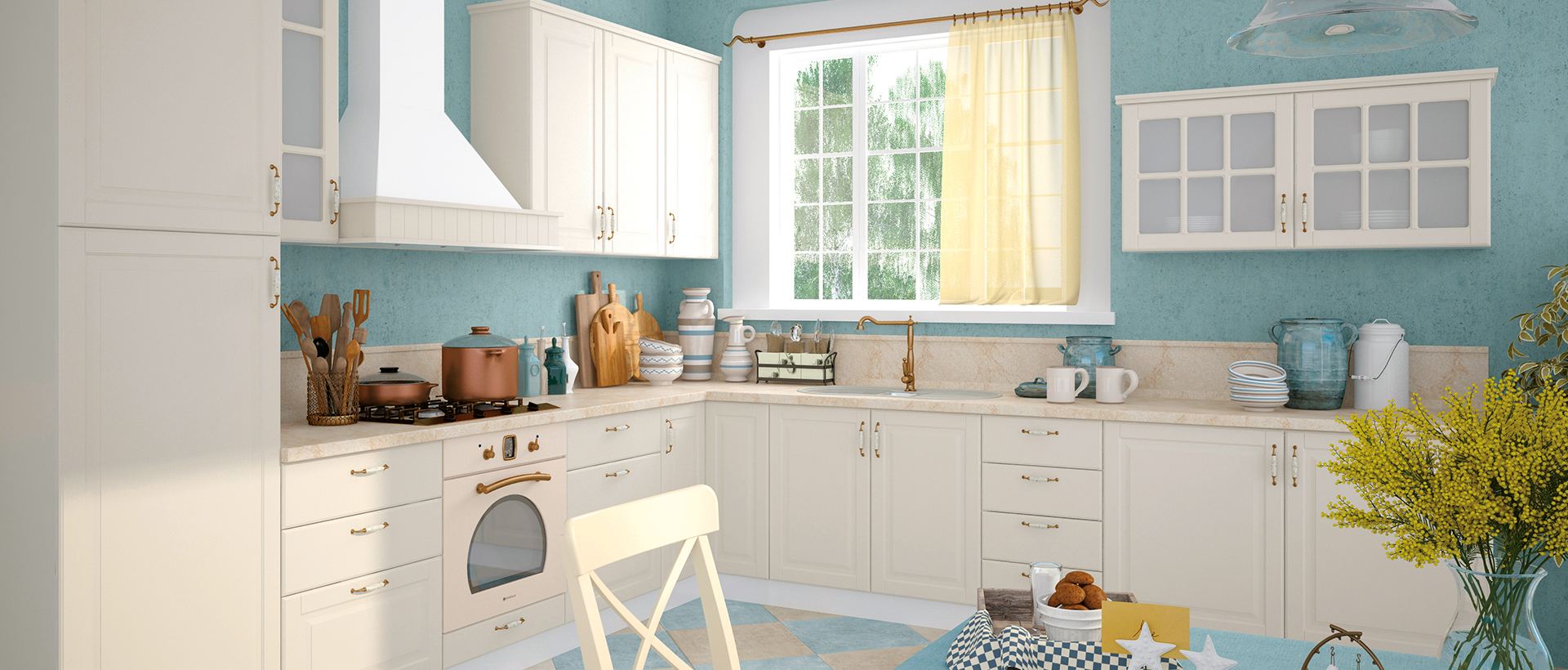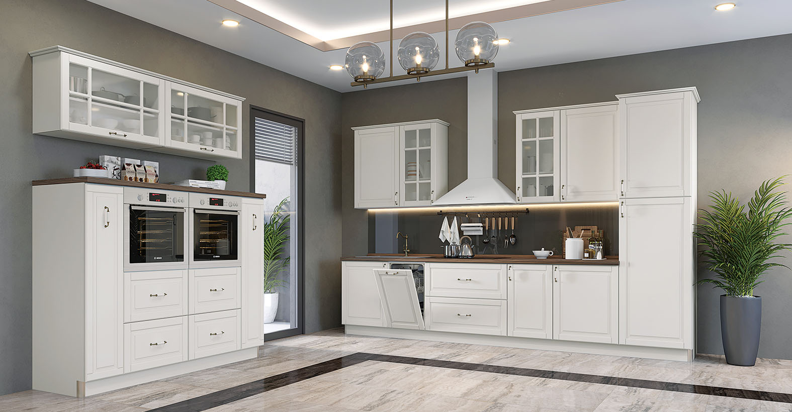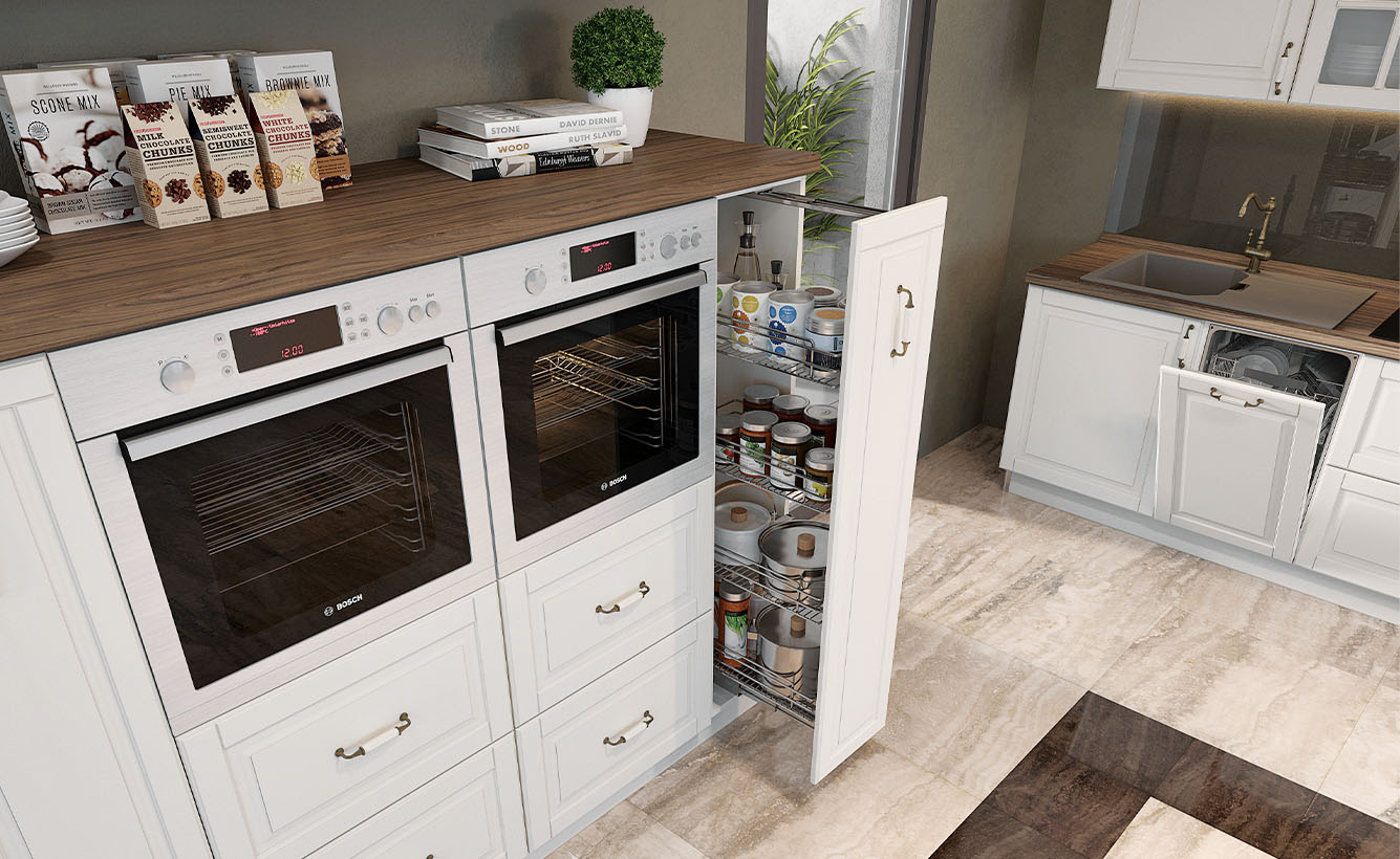 Кухня Evergreen е създадена в един от най-актуалните стилове – Винтидж и то в много приятен цвят – слонова кост. Фрезованите вратички и витрините, в съчетание с характерните за стила корнизи и ретро-дръжки, създават уют и приветливост. Чекмеджета са с механизми за плавно прибиране, панти с плавно затваряне. Дръжки в ретро стил. MDF покритие на лицето. Използвана е най-добрата технология за боядисване на фронта с нанасяне на UV мат-лаково покритие върху боядисана повърхност.