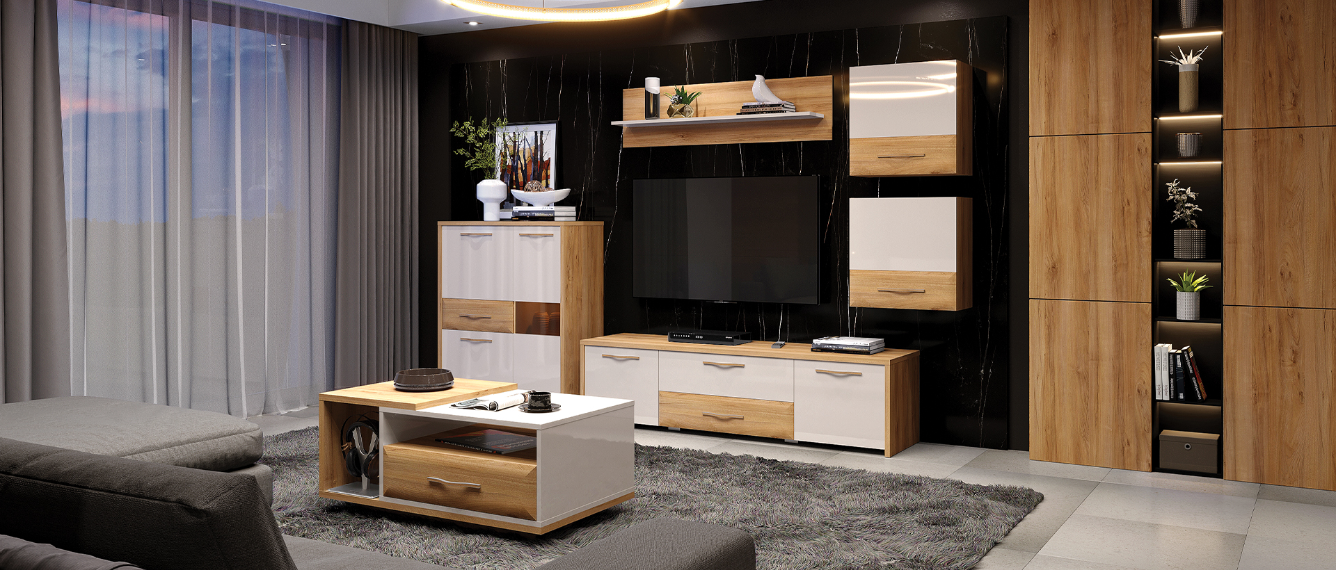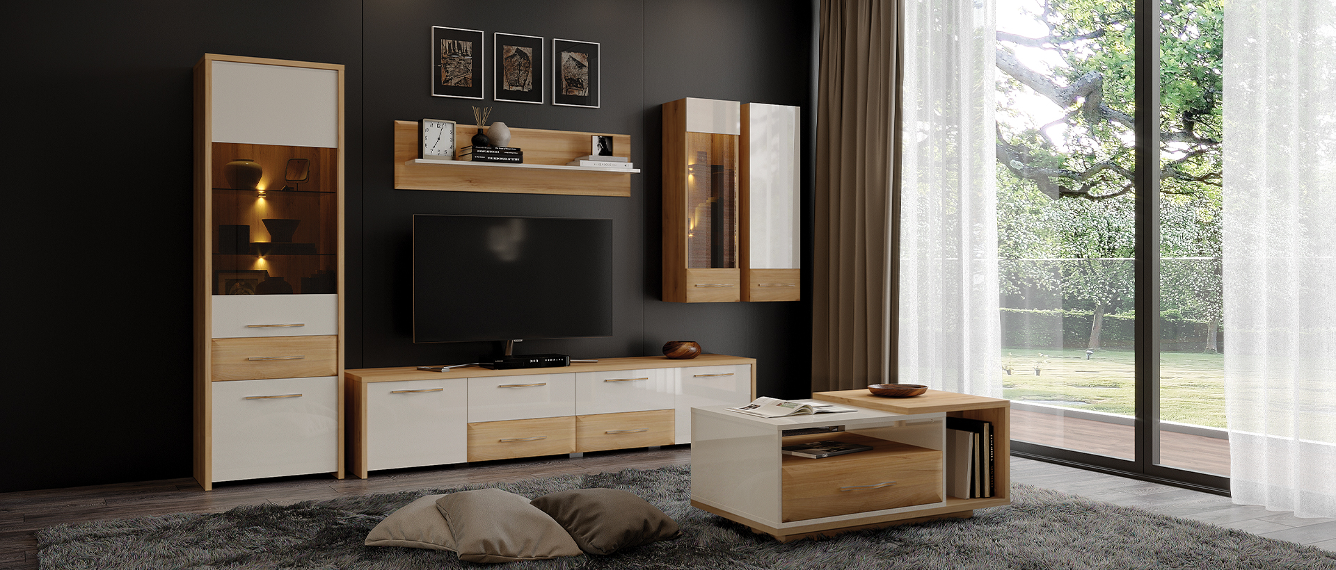 ТВ шкаф за хол от колекция мебели GALA с две врати и две чекмеджета.
