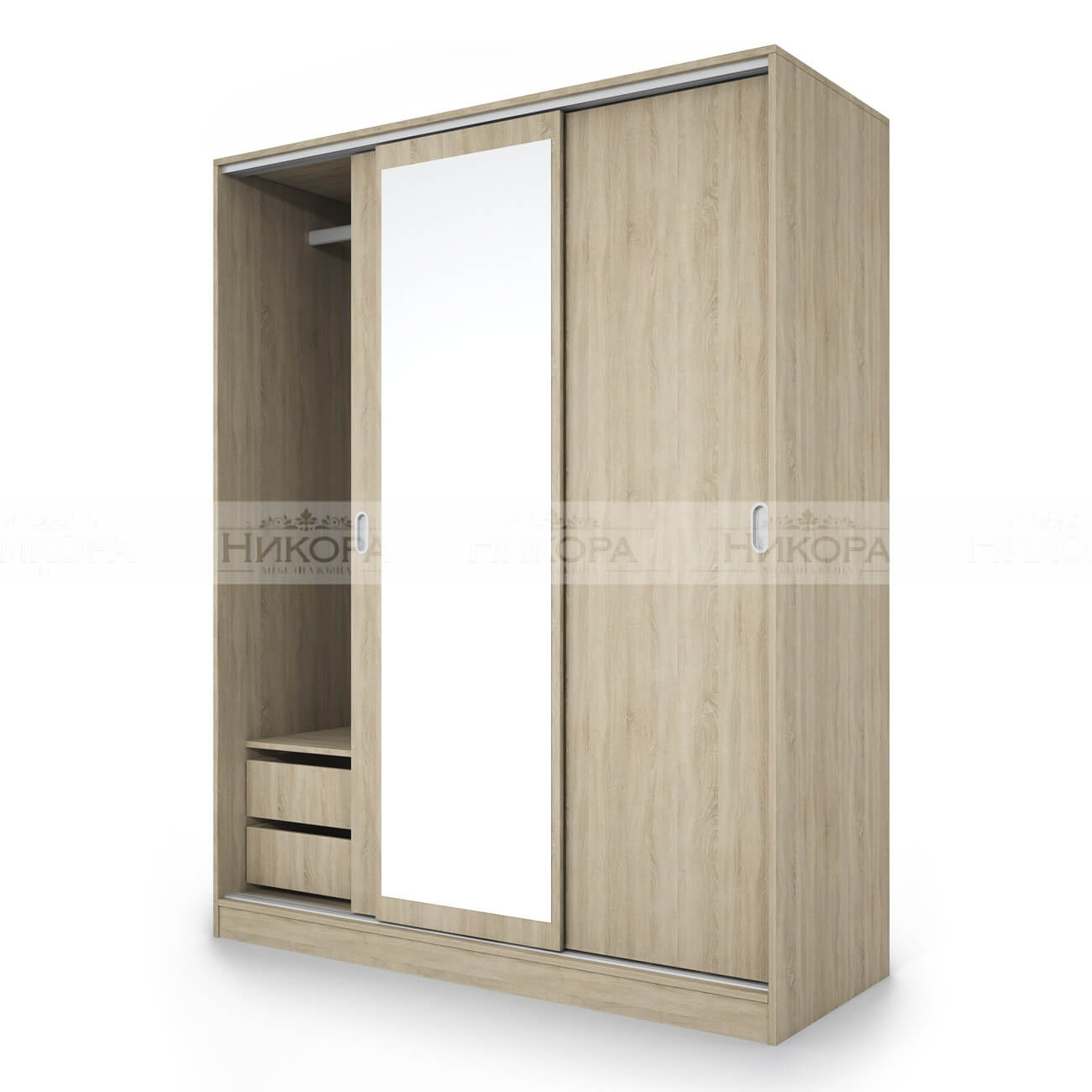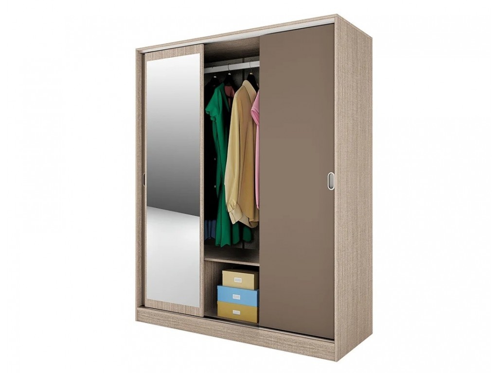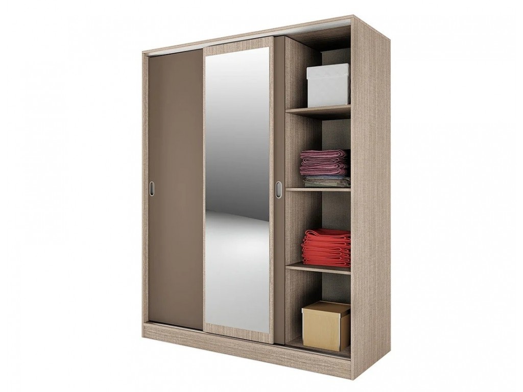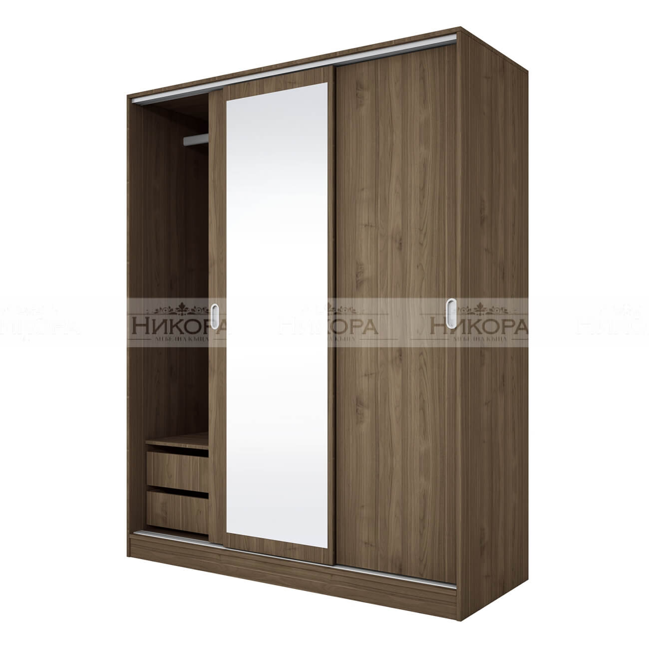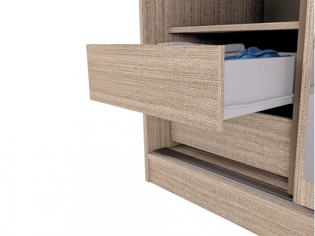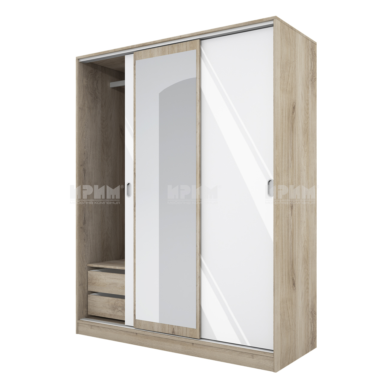 Сити 1006 представлява трикрилен гардероб с лост, рафт и 2 вътрешни чекмеджета зад двете врати и 3 рафта в другото крило. Този гардероб разполага и с централно огледало и плъзгащи врати. Сити 1006 е едно идеално допълнение за Вашата спалня. Гардеробът е част от модулна система за обзавеждане на спалня СИТИ.