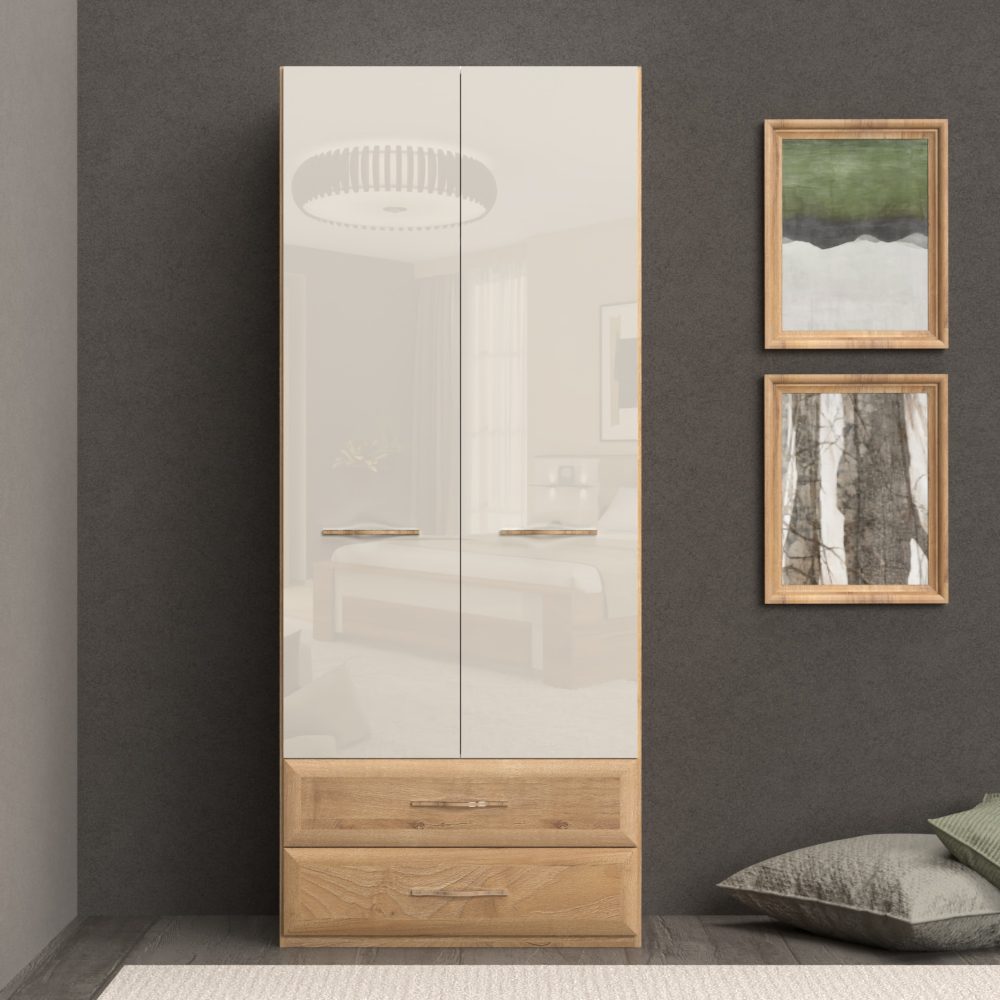 Двукрилен гардероб за спалня от колекция GALA с две чекмеджета.