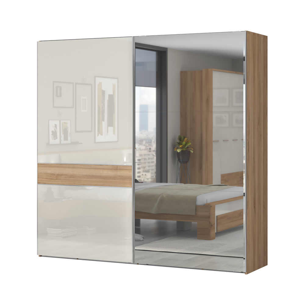 Двукрилен гардероб за спалня от колекция GALA с акцент в дървесен декор.