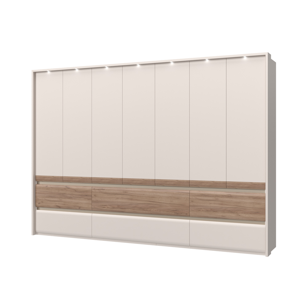 Гардероб за спалня от престижната колекция INVICTUS със седем врати и шест чекмеджета с хармонични заоблени чела.