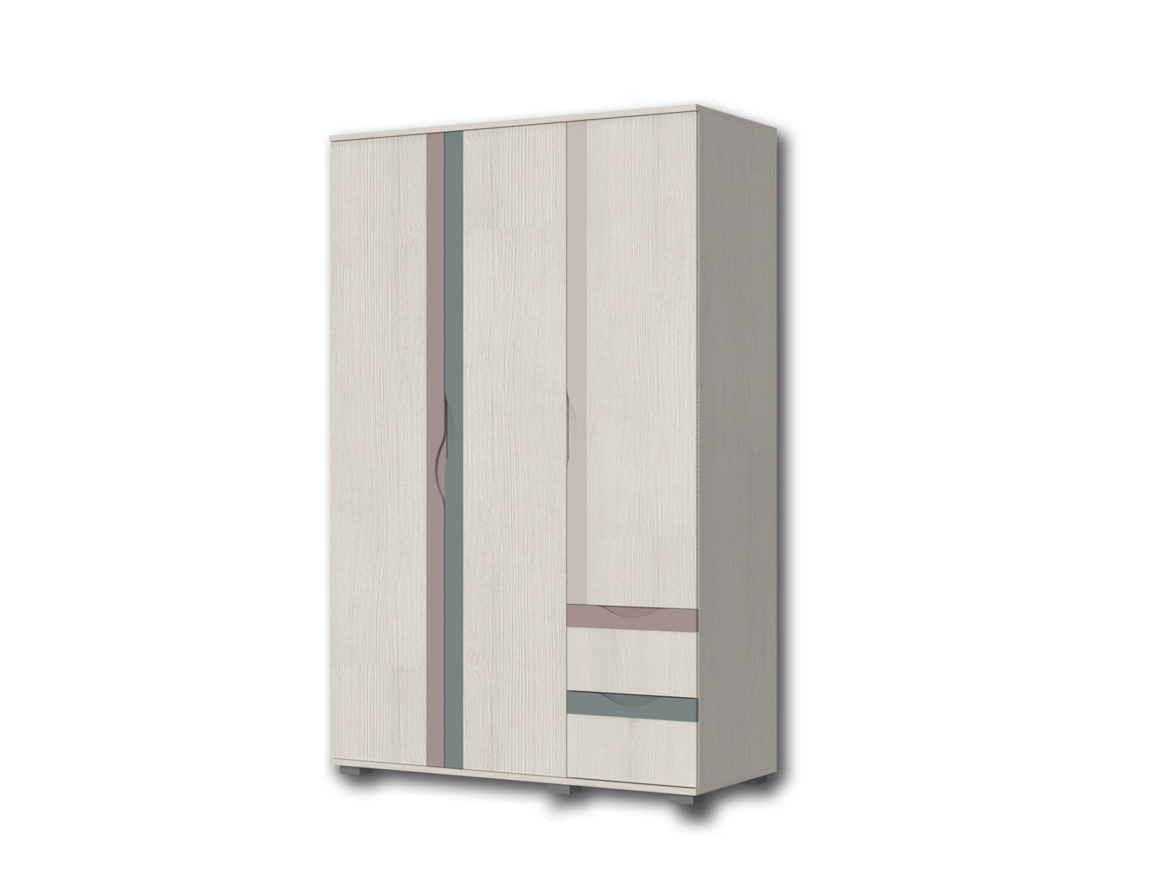 Гардероб за детска спалня от колекция JOY с три врати и две чекмеджета с декоративни дръжки от МДФ в различни цветове.