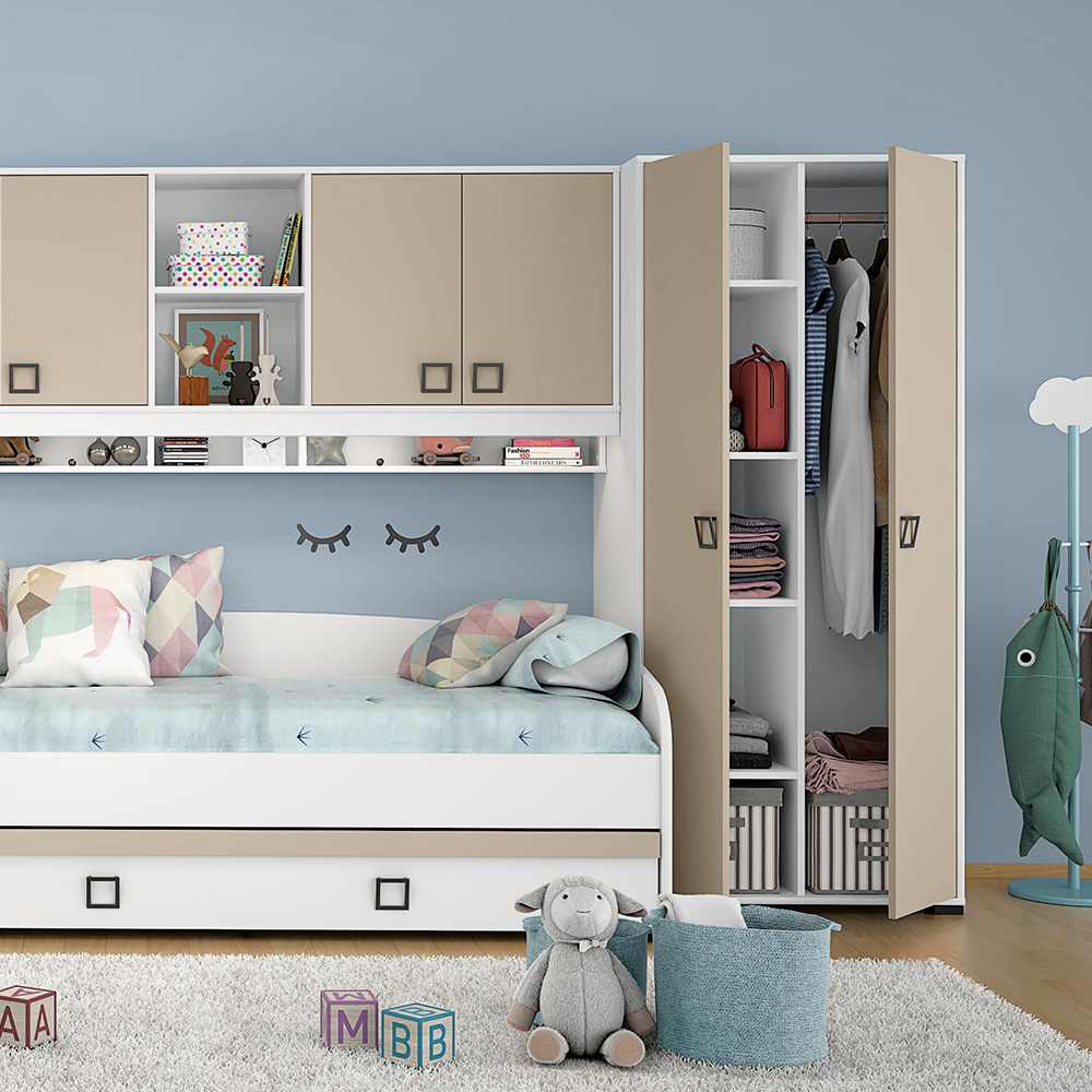 Гардероб за детска спалня от колекция KIKI с две врати. Моделът, който се отличава от останалите на пазара със своето качество и функционалност.