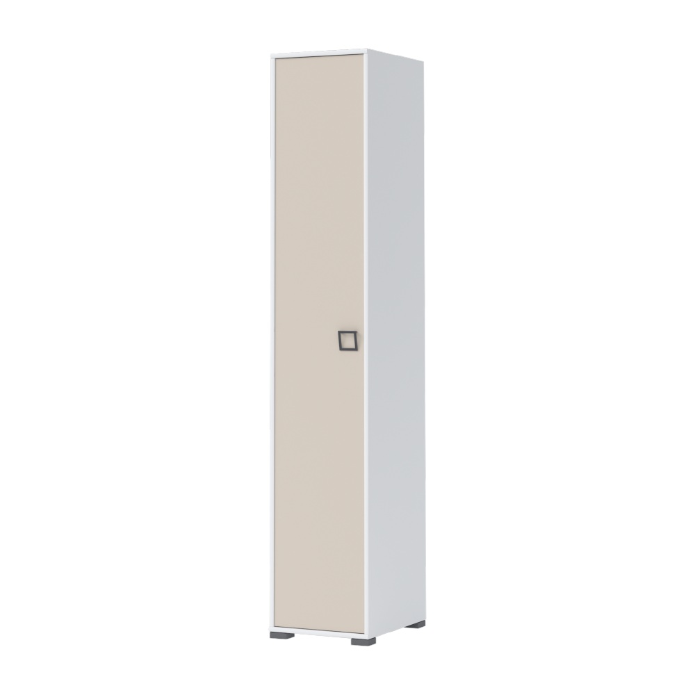Гардероб за детска спалня от колекция KIKI, с една врата, като има възможност за избор на ляво или дясно отваряне на вратата. Модел, който се отличава от останалите на пазара със своето качество и функционалност.