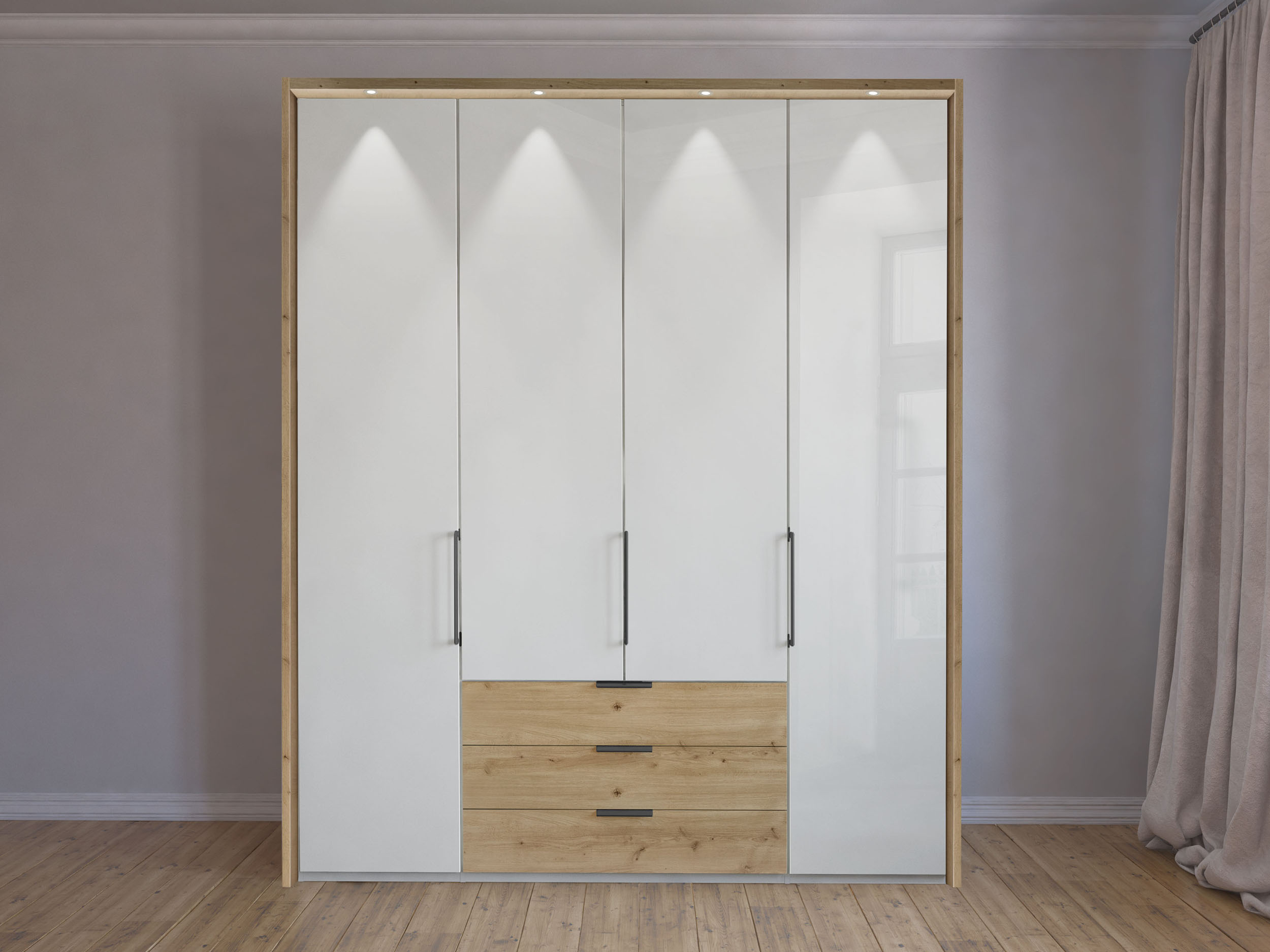 Представяме ви гардероб с 4 отваряеми врати и 3 чекмеджета,