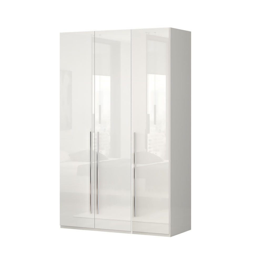 Лицето на гардероба е покрито с UV лак супер гланц, в топъл бежов или кристално бял цвят, вътрешността на корпуса е в бял цвят.