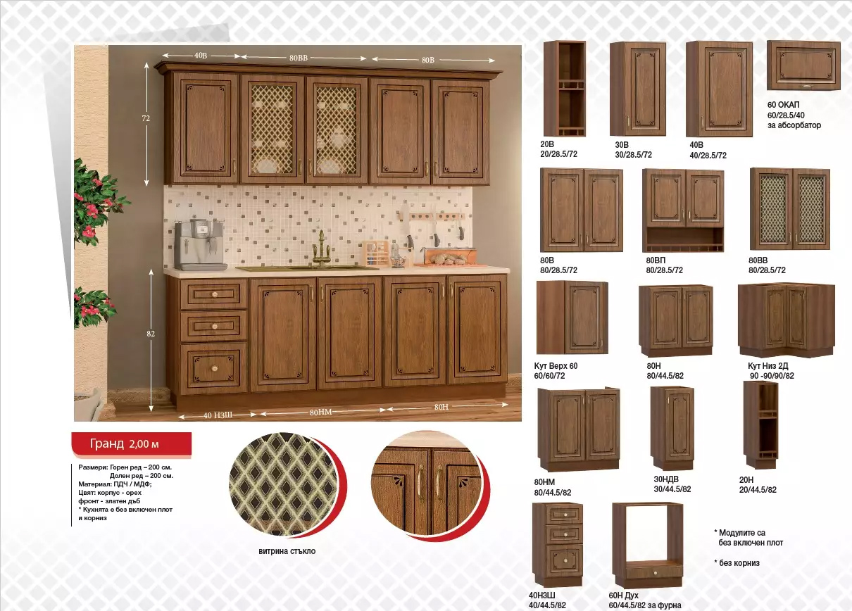Кухня Гранд на комплект 2,00 м и допълнителни модули.