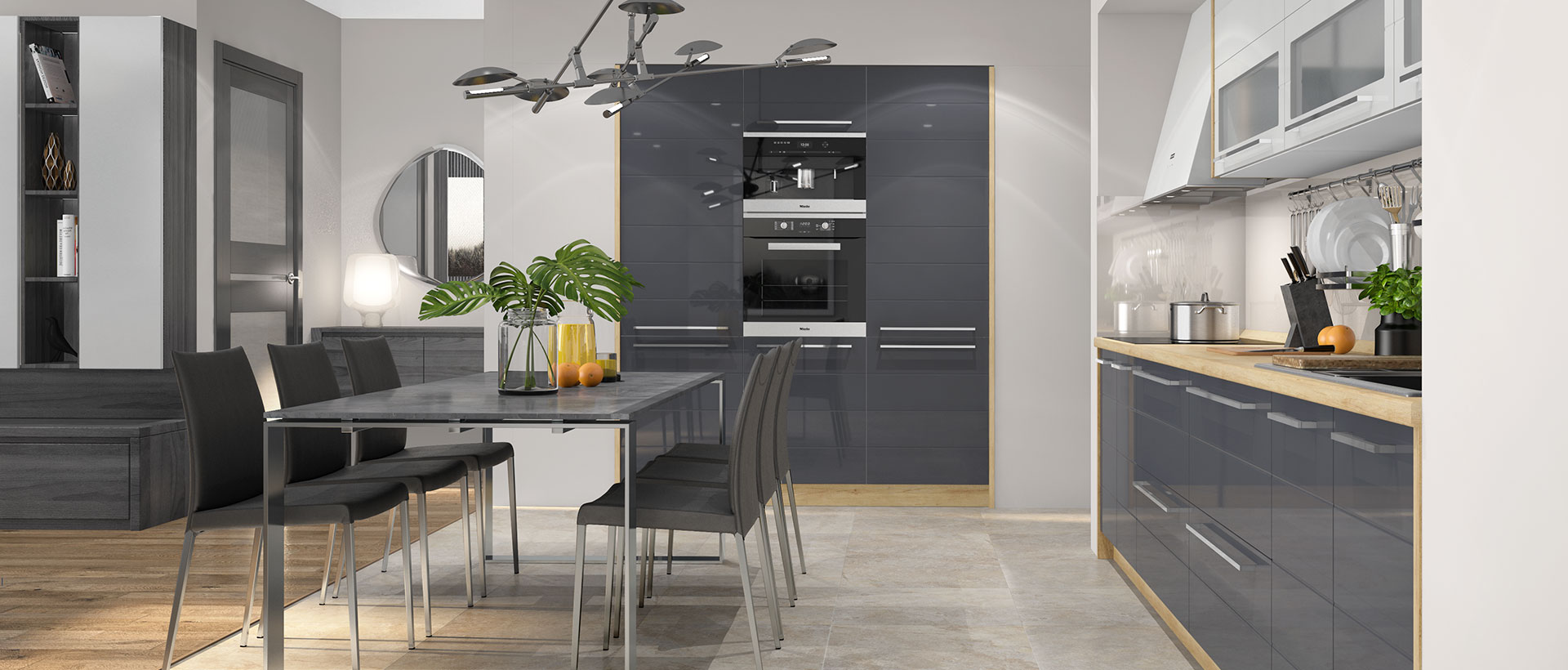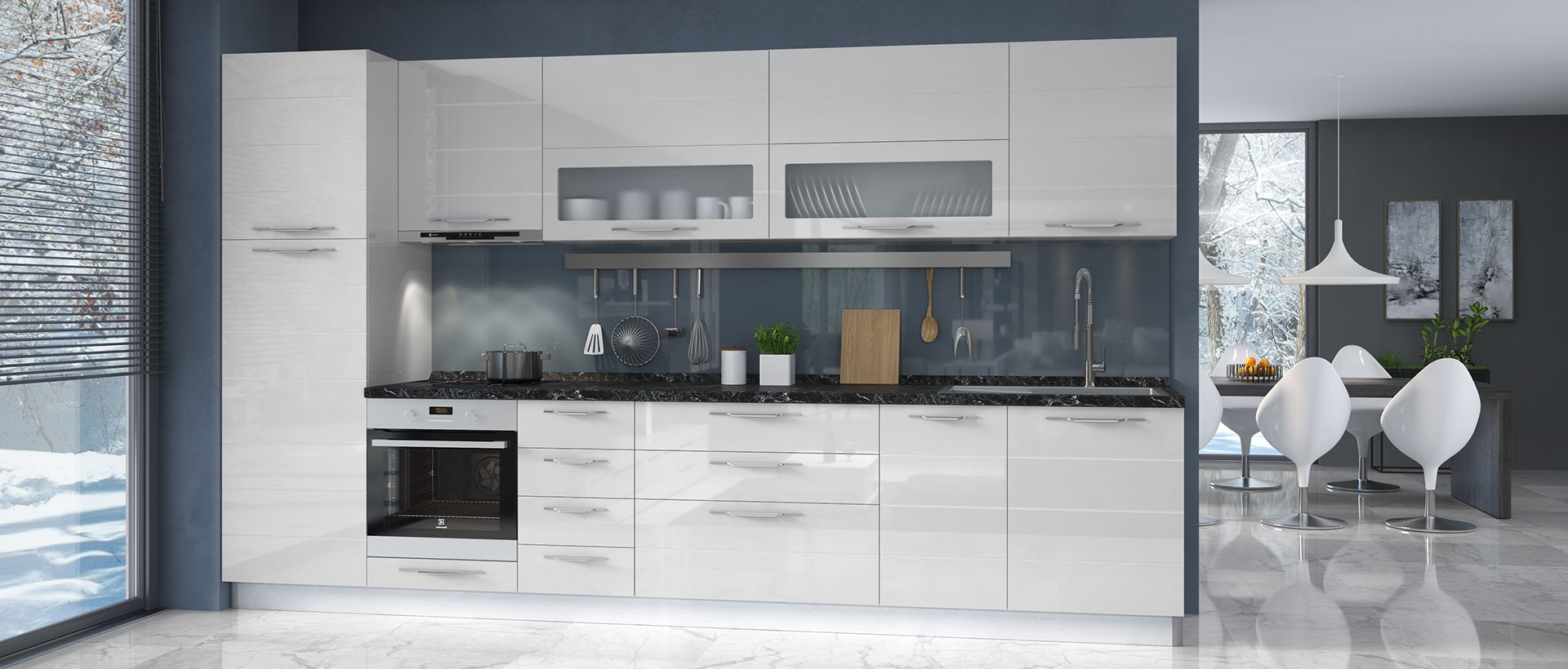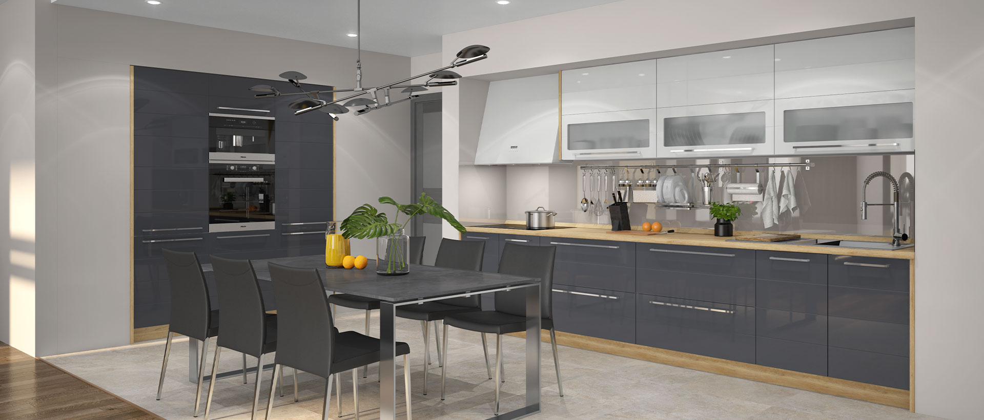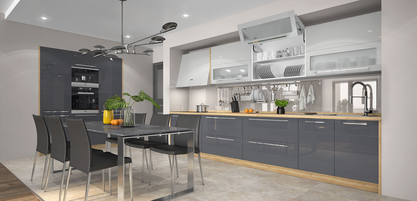 Кухня Highline има специфична модерна визия заради вратите с хоризонтални бразди и актуалните цветове. Избор от богата серия 50 вида модули + много аксесоари. MDF покритие на лицето с използвана най-добрата технология за боядисване на фронта с нанасяне на UV лаково покритие.