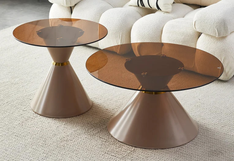 Холни маси 2 в 1 “Rebeca” са комплект, който се състои от две кръгли маси – голяма и малка. Плотовете са изработени от стъкло, а основите им са метални.