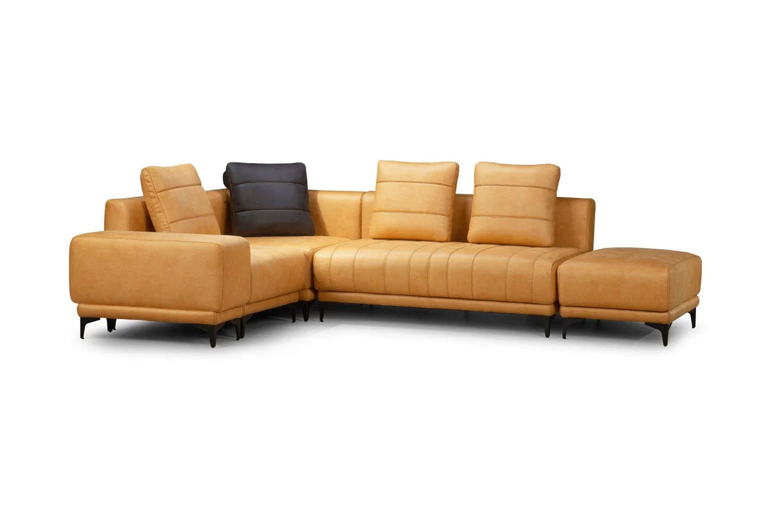 Размери: 255/215см Предложената конфигурация включва модулите : Двойка, малък ъгъл, единичка, подлакътник *Опция Табуретка – допълнително закупуване
